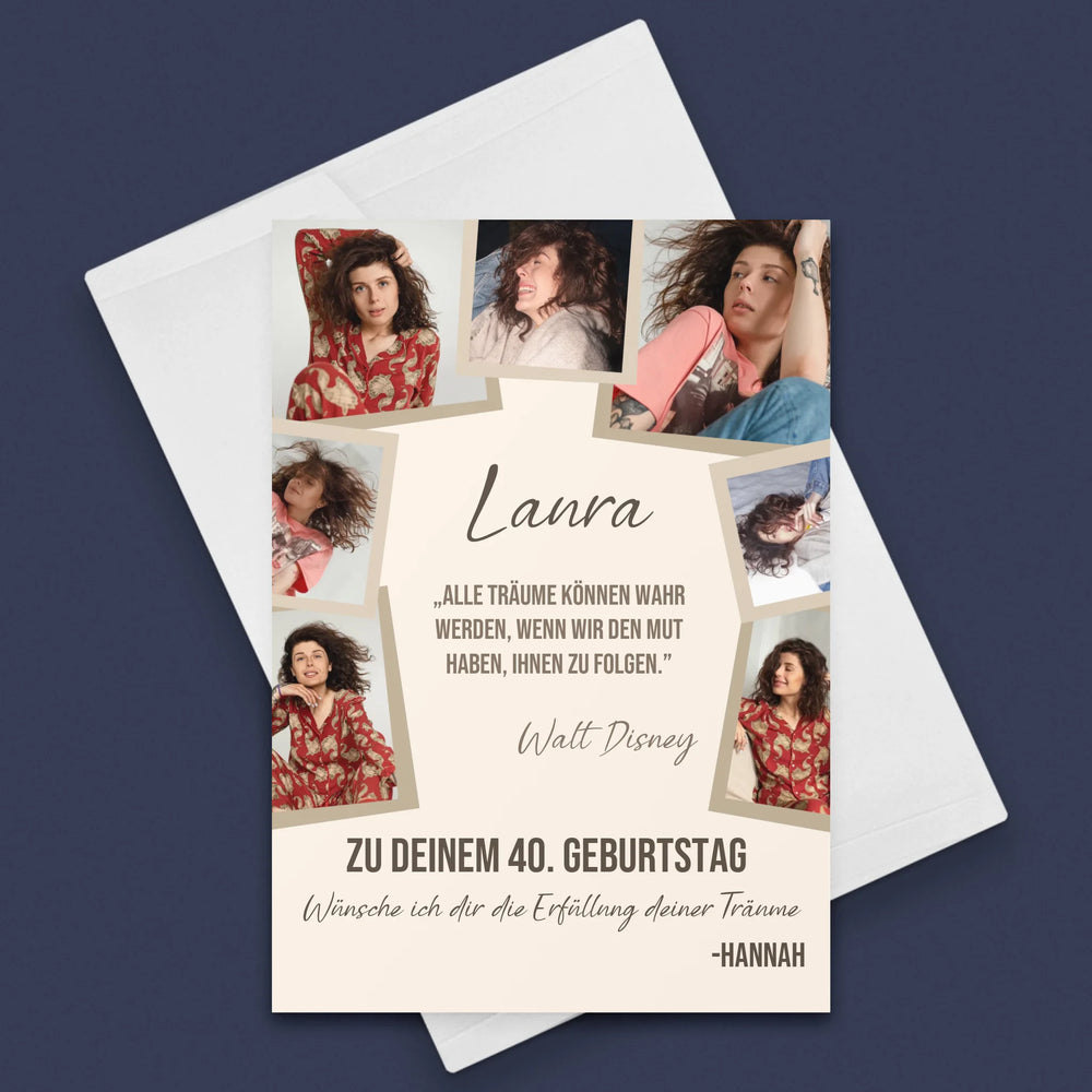 Fotocollage: 40. Geburtstag Erfülle Deine Träume - Glückwunschkarte