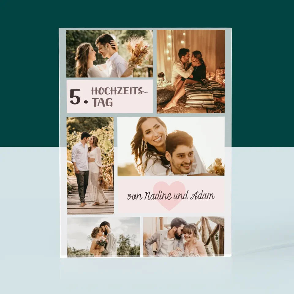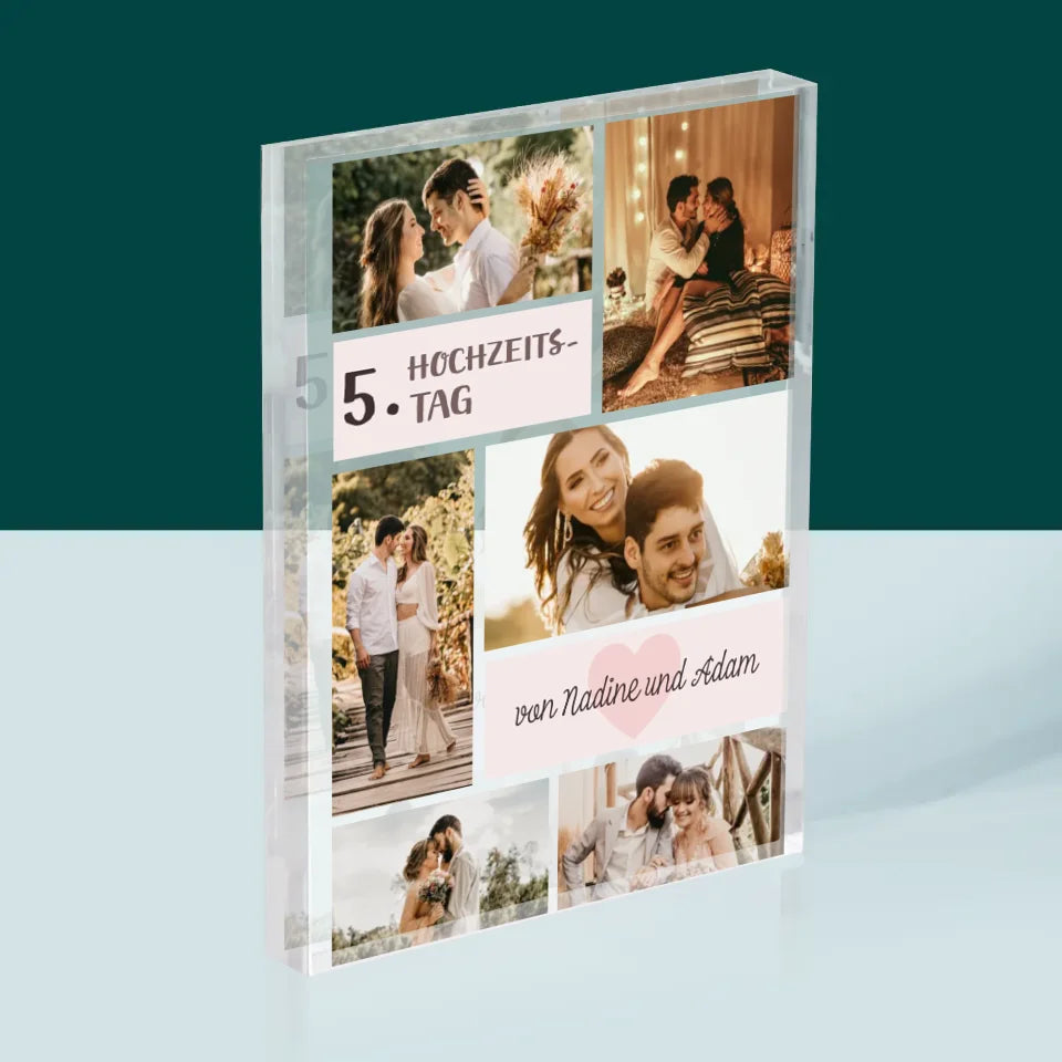 Fotocollage: 5. Hochzeitstag - Acrylblock - Vertikal