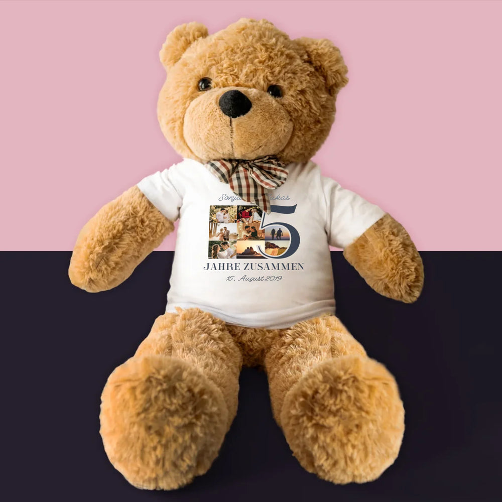Fotocollage: 5 Jahre Zusammen - Teddybär 90 cm