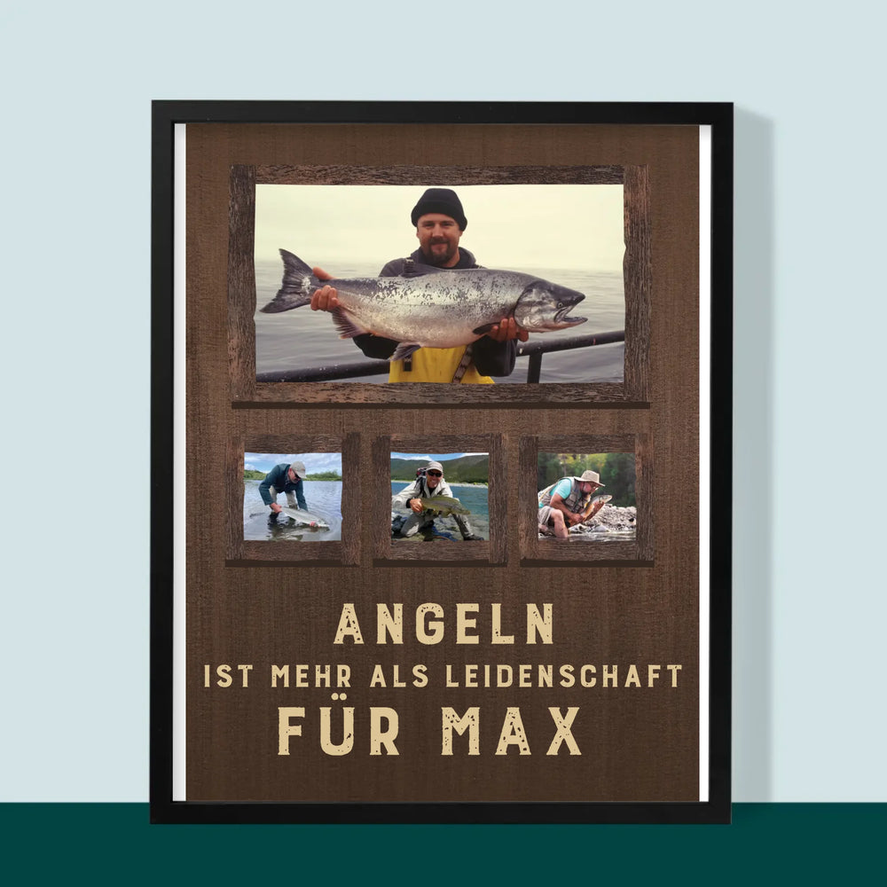 Fotocollage: Angeln - Druck mit Rahmen - Vertikal