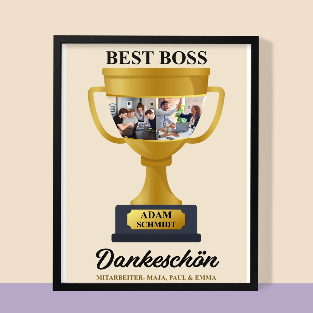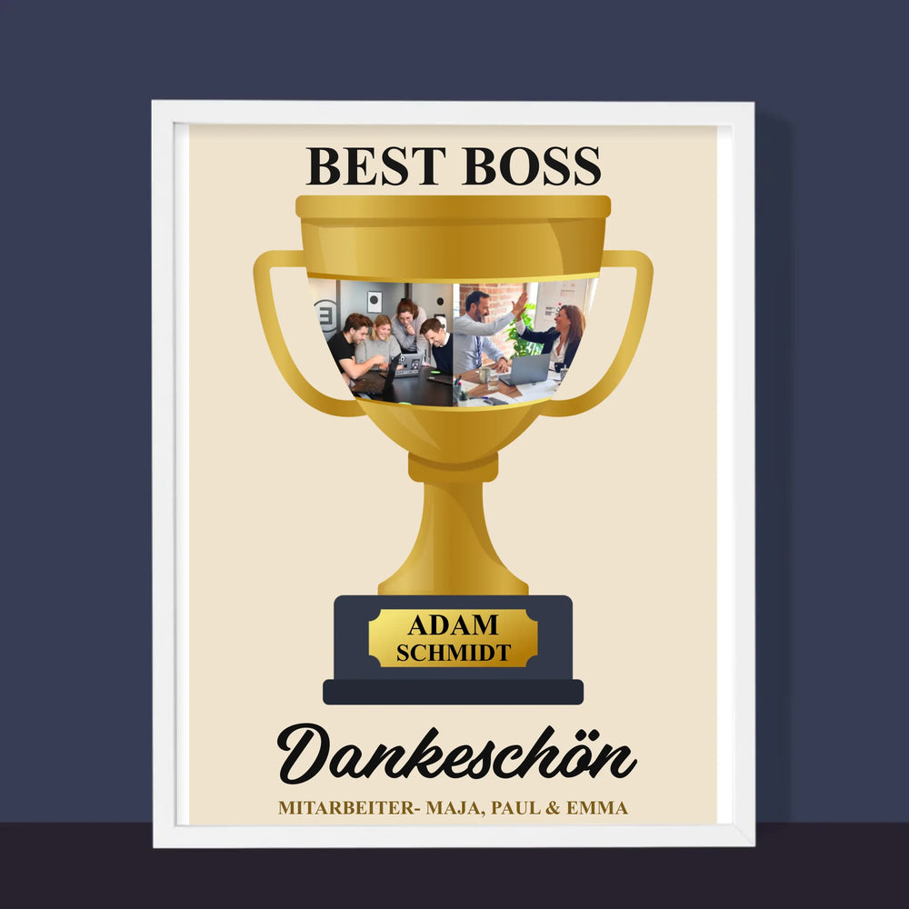 Fotocollage: Best Boss Pokal - Druck mit Rahmen - Vertikal
