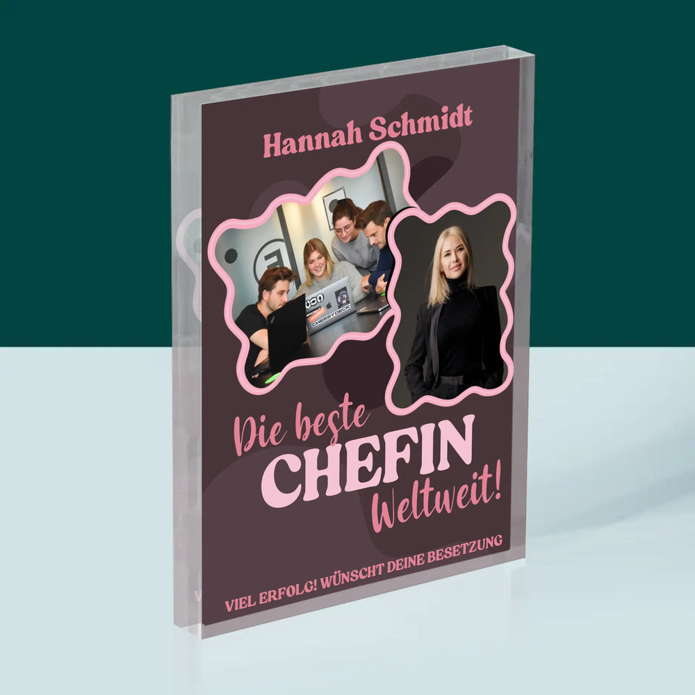 Fotocollage: Beste Chefin - Acrylblock - Vertikal