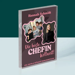 Fotocollage: Beste Chefin - Druck auf Holz - Vertikal