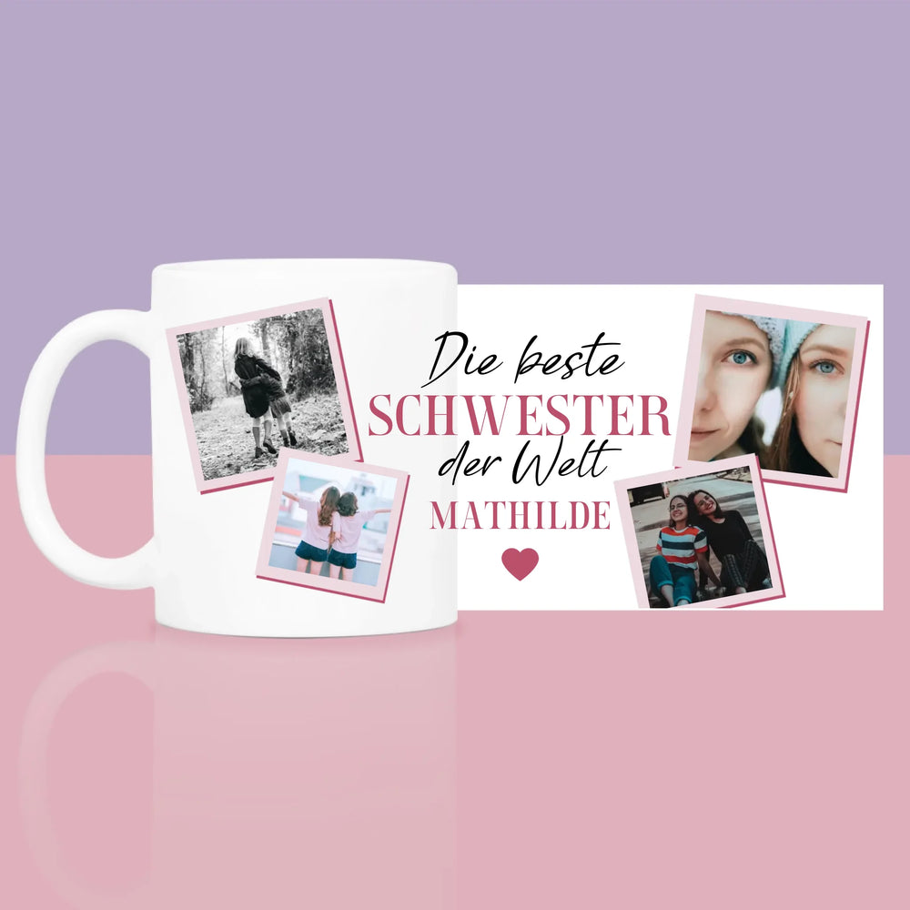 Fotocollage: Beste Schwester Der Welt - Geschenkset mit Tasse und Wellnessartikeln