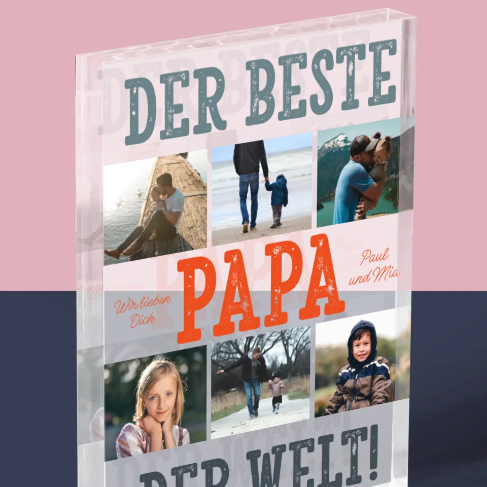 Fotocollage: Bester Papa Der Welt Fotos - Acrylblock - Vertikal