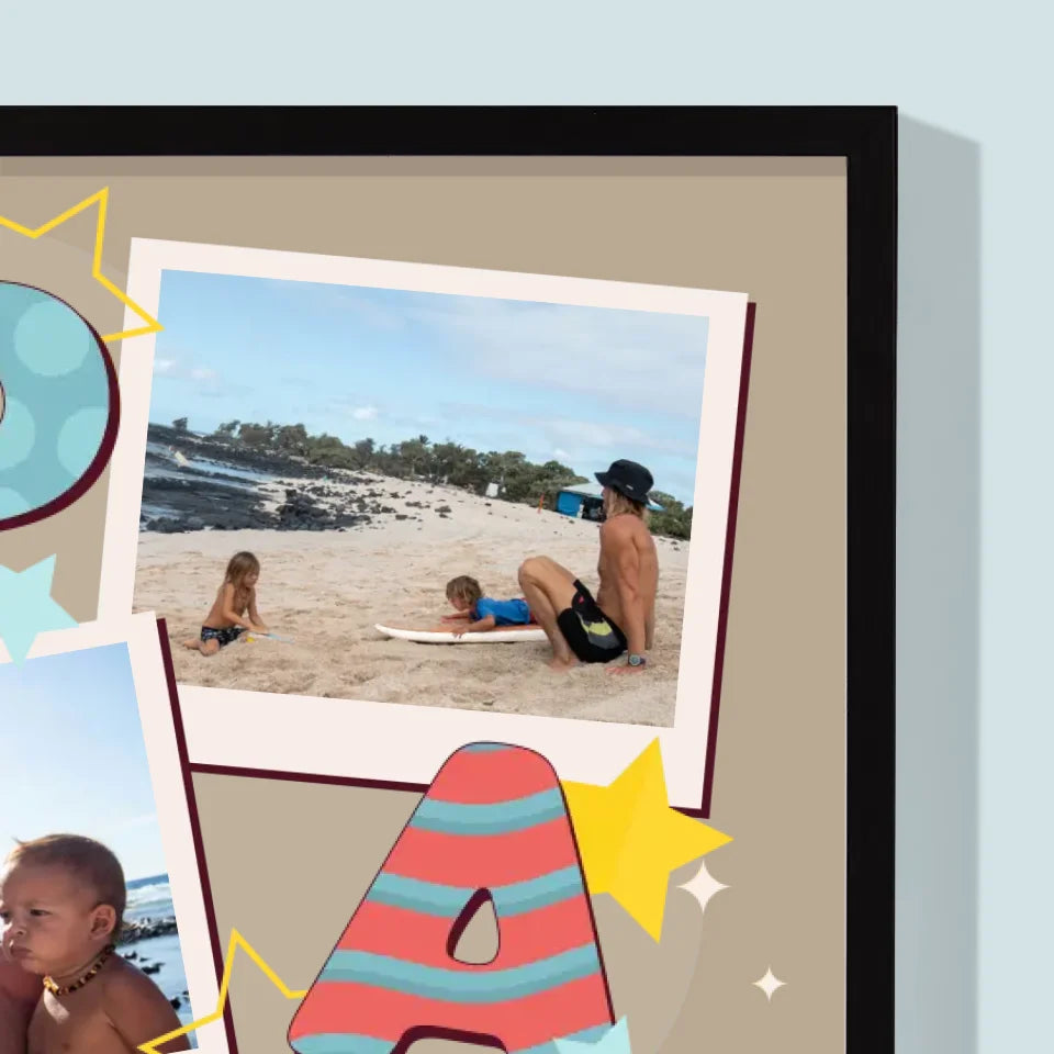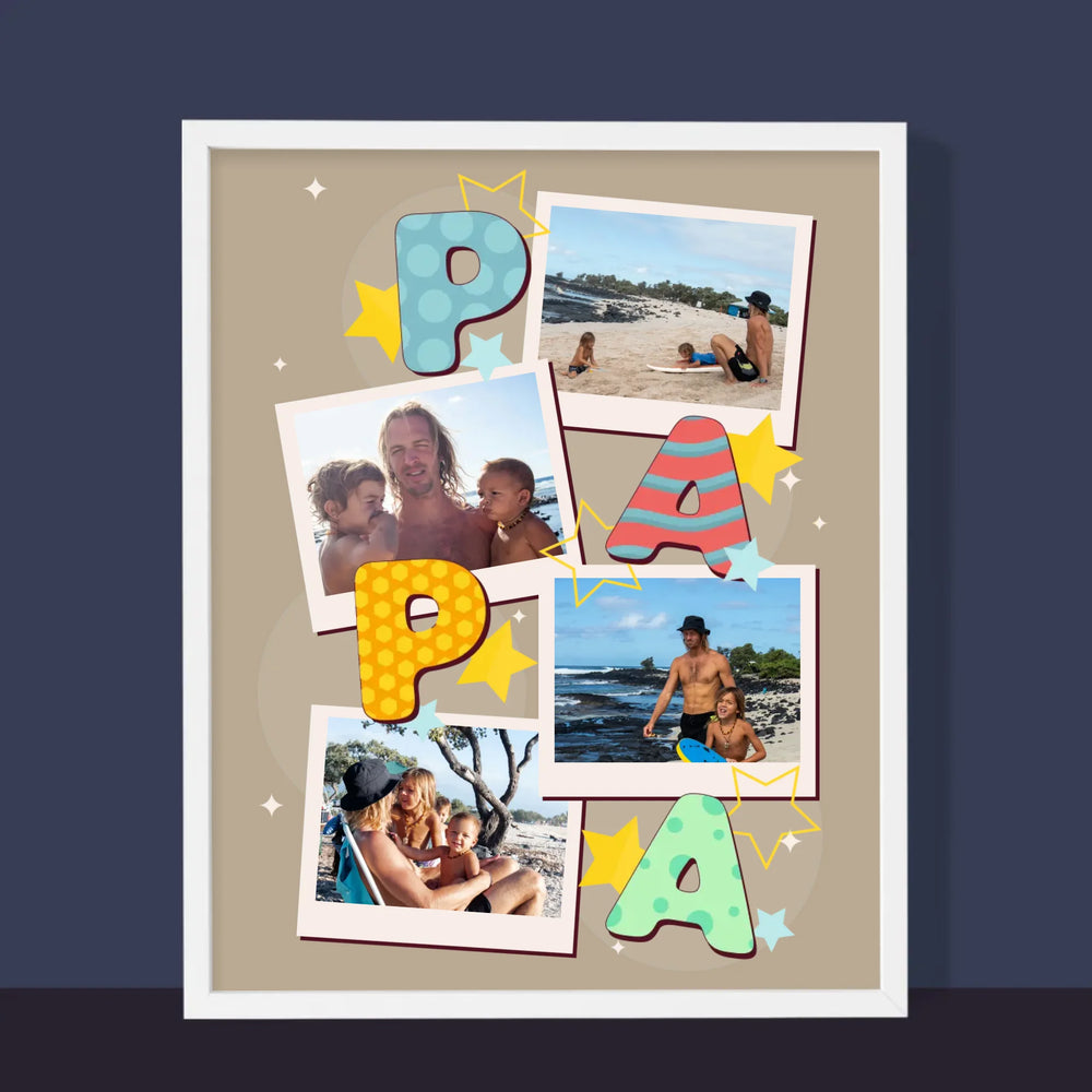 Fotocollage: Buchstaben Papa - Druck mit Rahmen - Vertikal