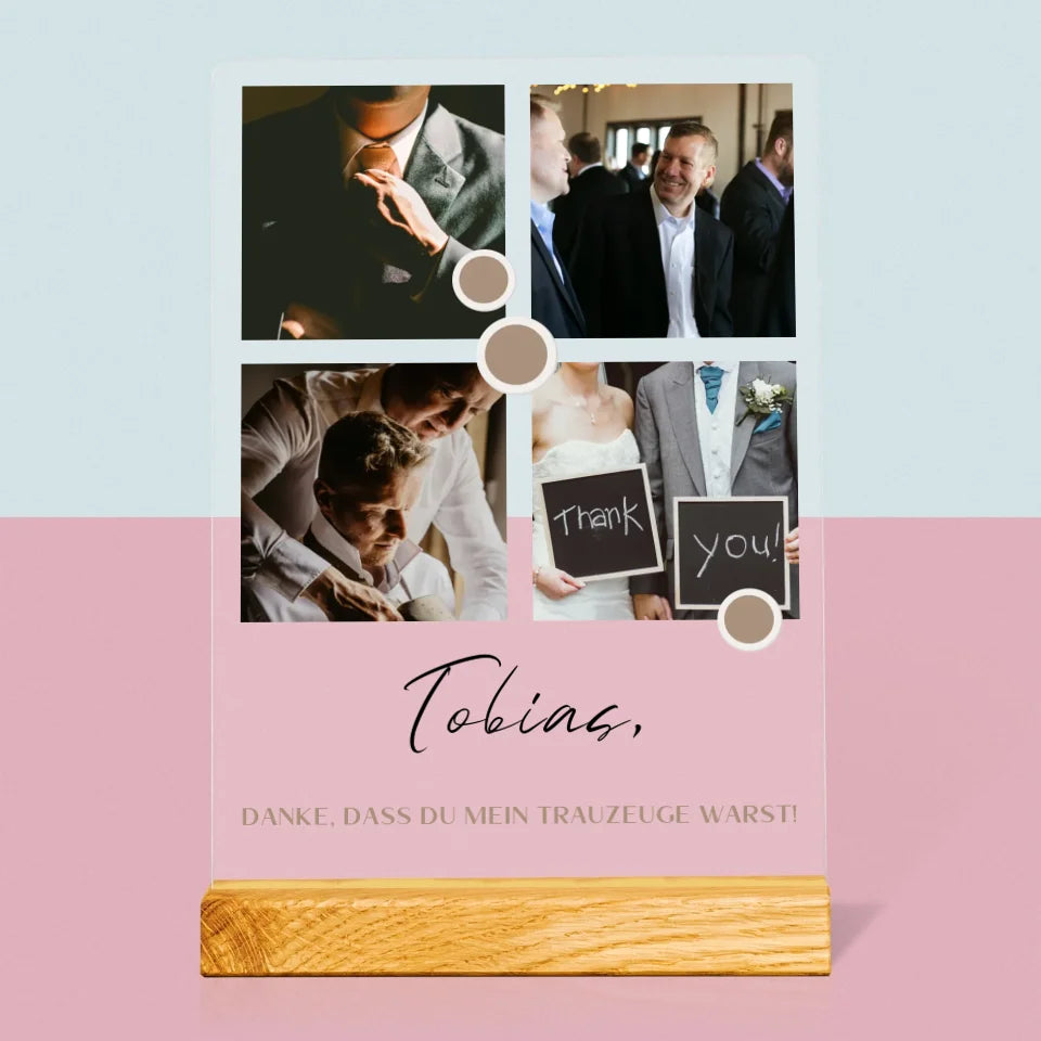 Druck auf einem 2 cm dicken, klaren Acrylglas (Plexiglas), individuell personalisiert.