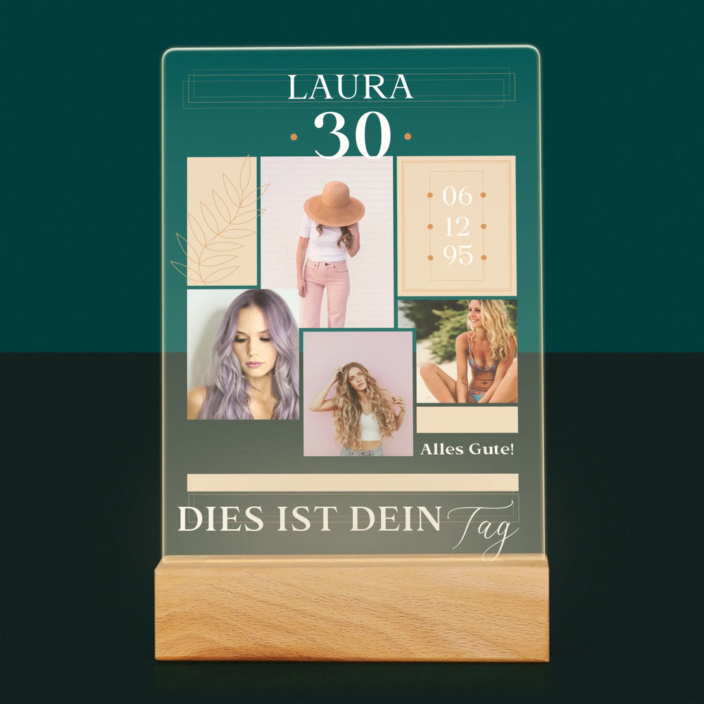 Fotocollage: Das Ist Dein Tag - Druck auf Acrylglas mit LED-Beleuchtung