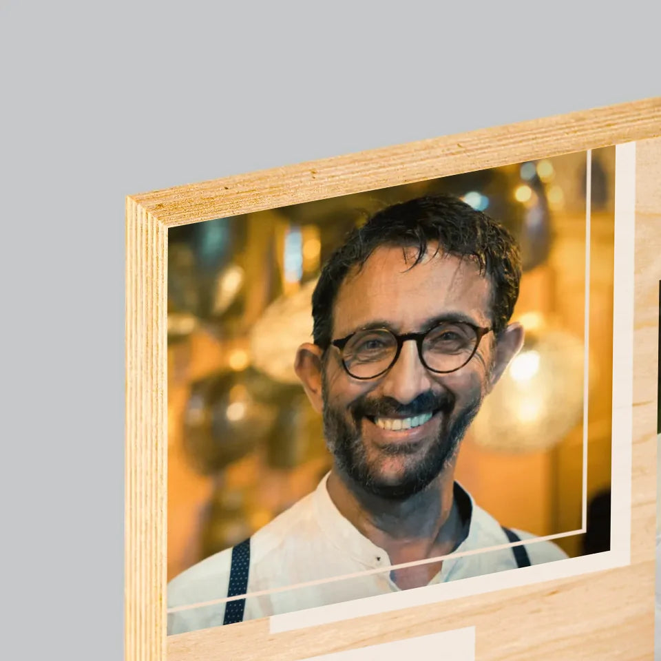 Druck auf einem 1,8 cm dicken Holzblock, individuell personalisiert.