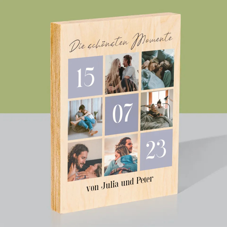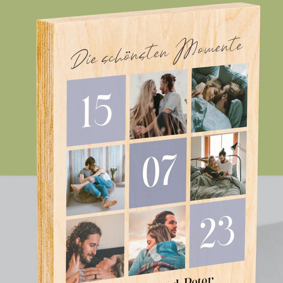 Fotocollage: Die Schönsten Momente - Druck auf Holz - Vertikal