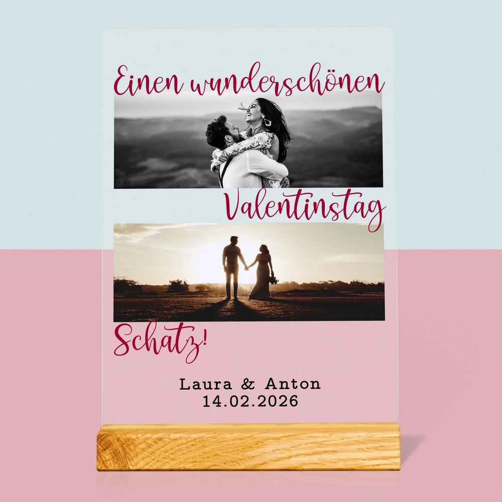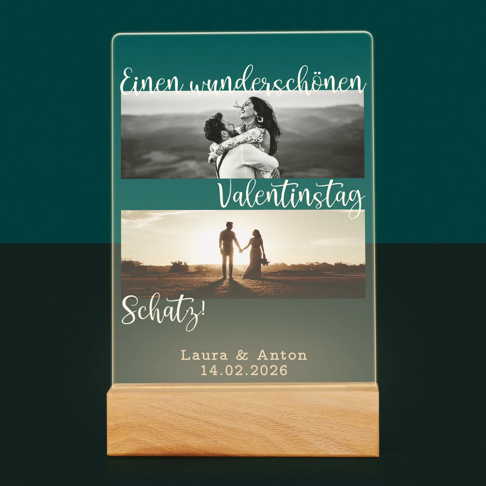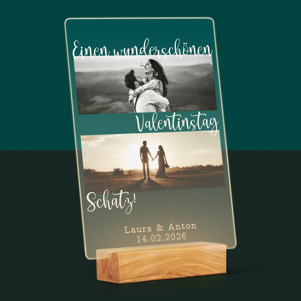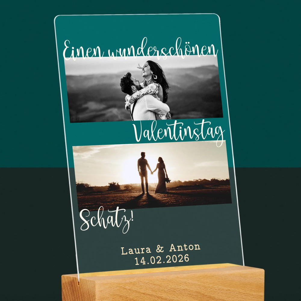 Fotocollage: Einen Wunderschönen Valentinstag - Druck auf Acrylglas mit LED-Beleuchtung