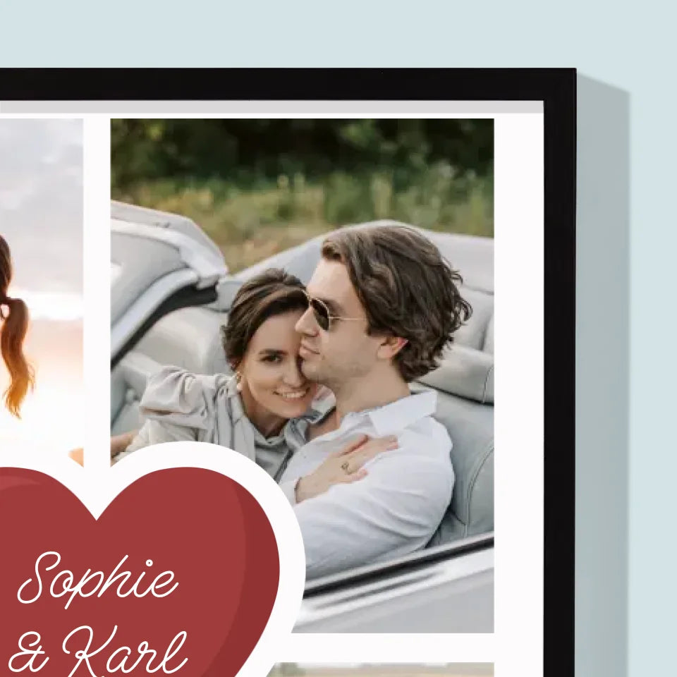 Fotocollage: Erster Hochzeitstag Herz - Druck mit Rahmen - Vertikal