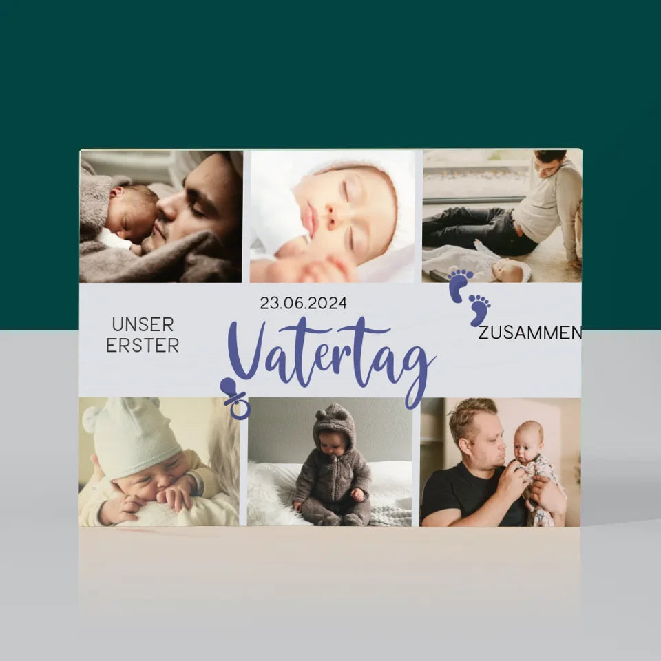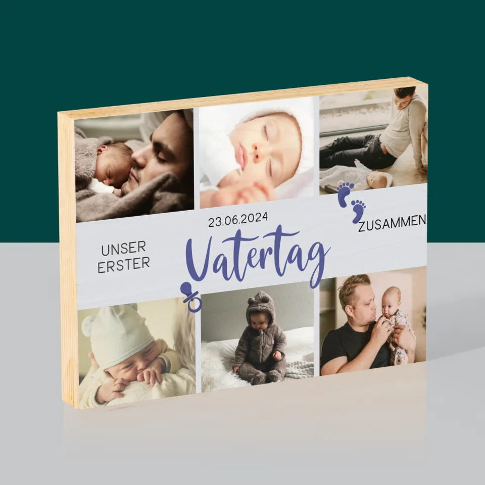 Fotocollage: Erster Vatertag - Druck auf Holz - Horizontal