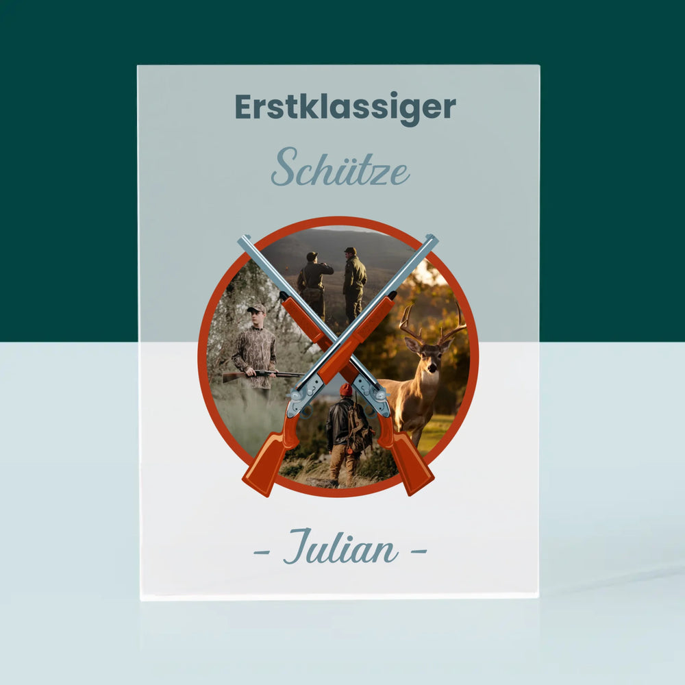 Fotocollage: Erstklassiger Schütze - Acrylblock - Vertikal