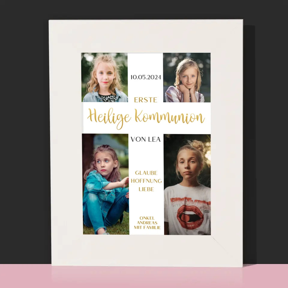 Fotocollage: Erstkommunion Kreuz - Bilderrahmen - Vertikal