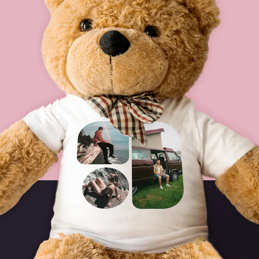 Die Personalisierung ist auf dem beigefügten T-Shirt des Teddybären möglich.