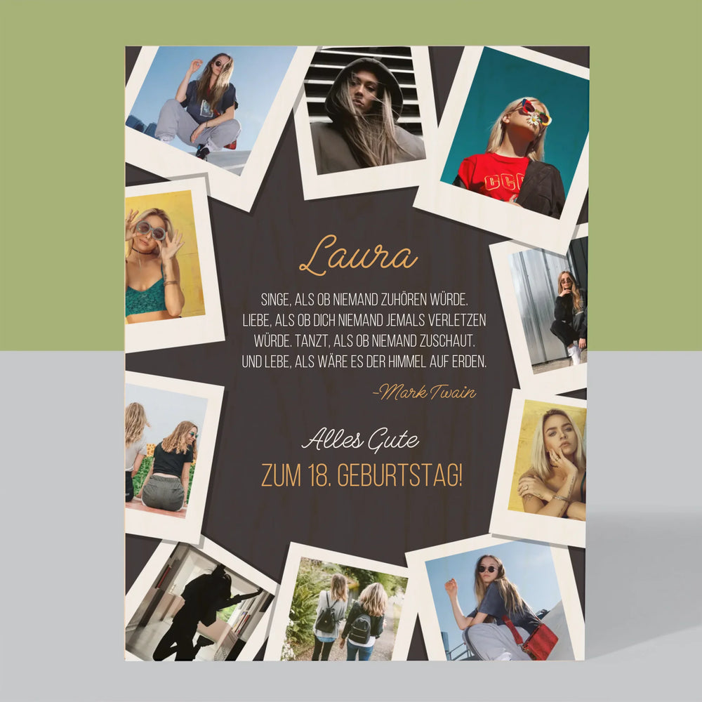 Fotocollage: Geburtstagswünsche - Druck auf Holz - Vertikal