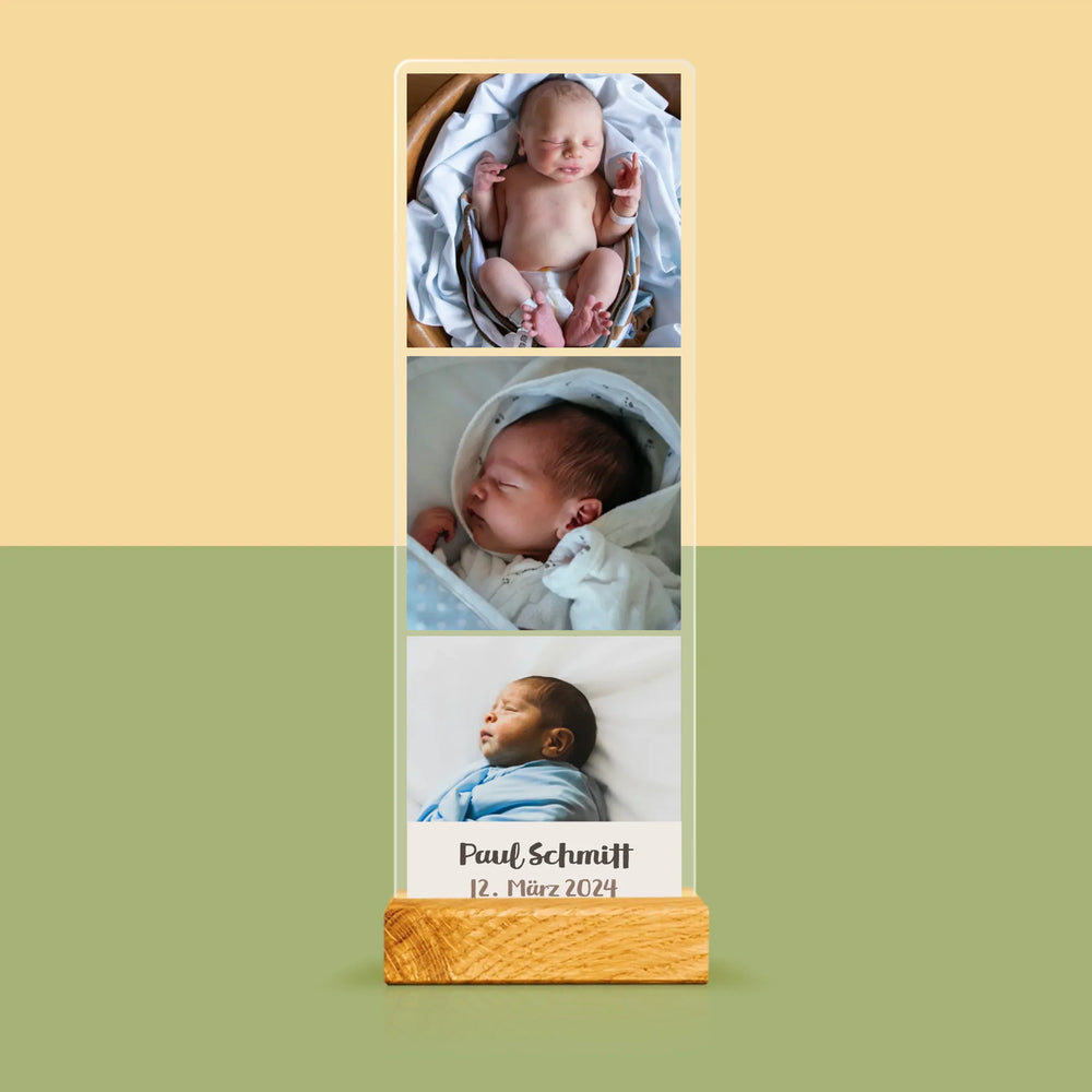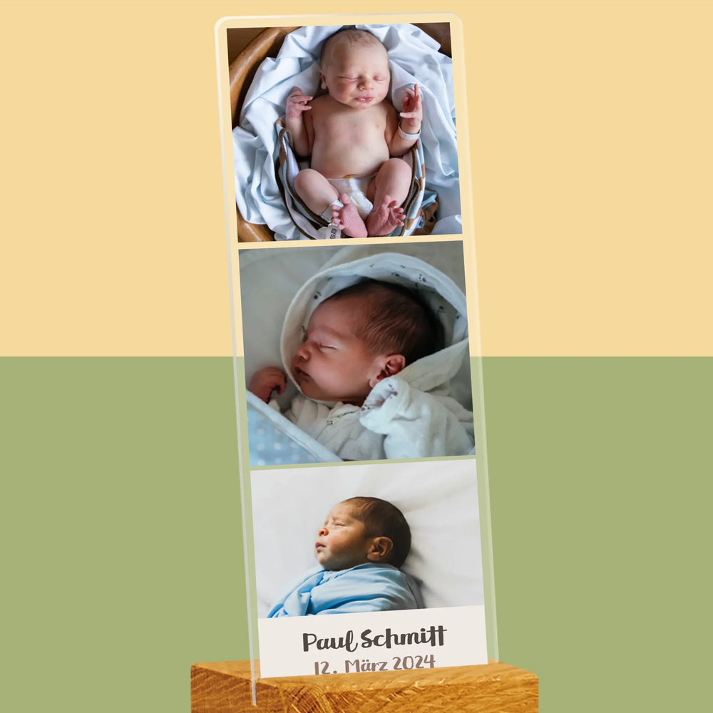 Dank des eleganten Holzständers kann der Druck überall platziert werden und ist stabil.