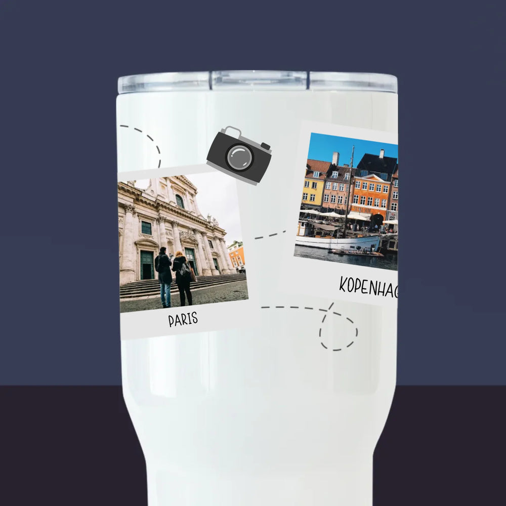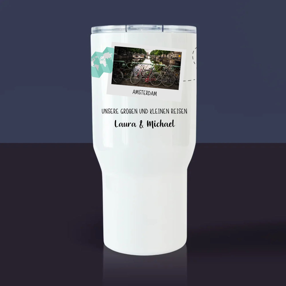 Fotocollage: Große Und Kleine Reisen - Thermobecher weiß