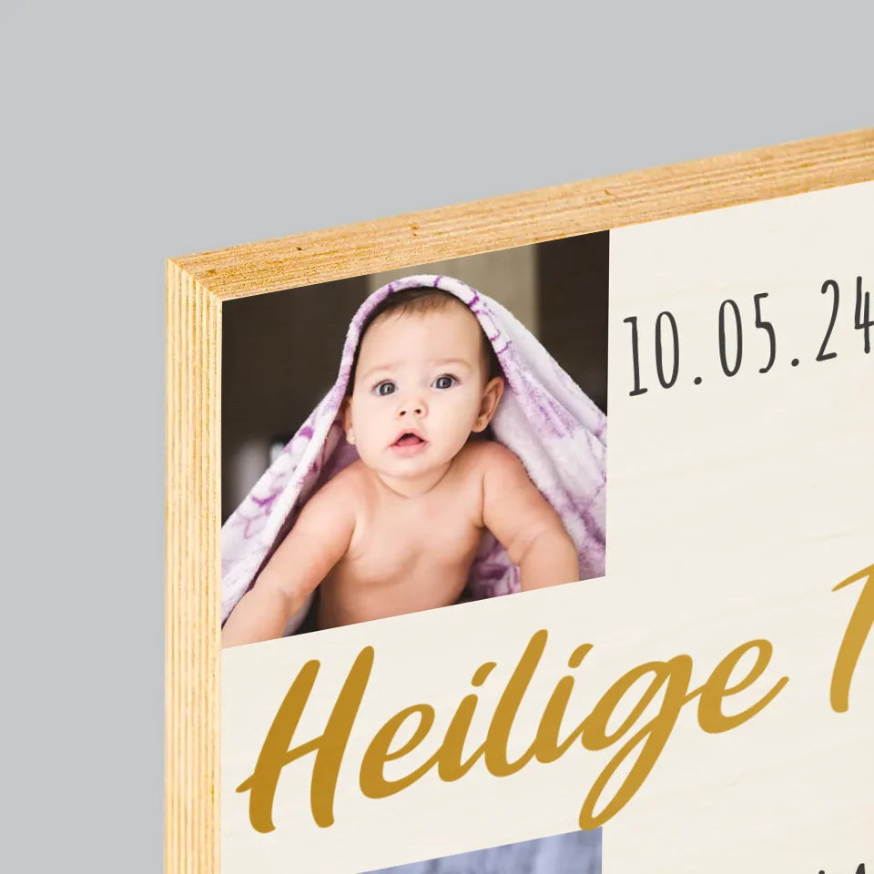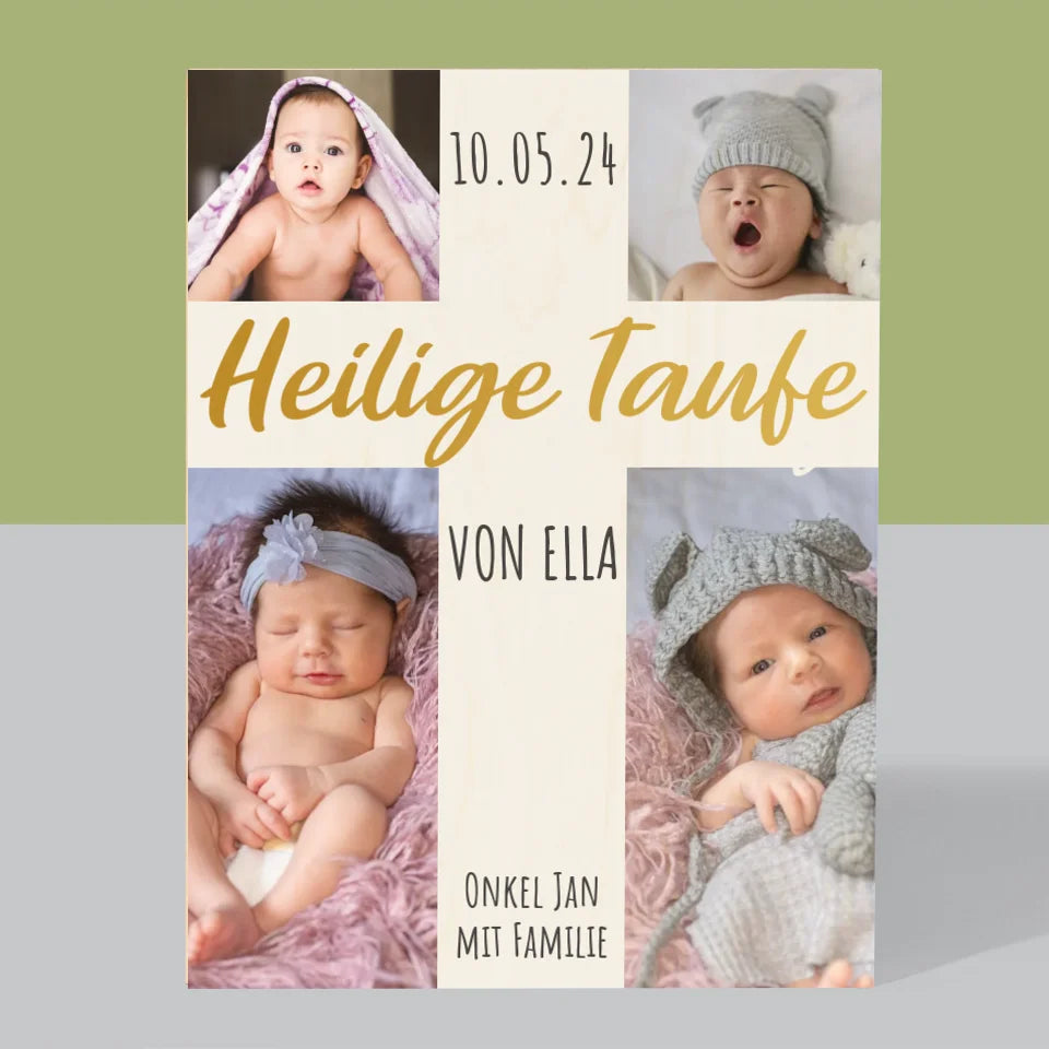 Fotocollage: Heilige Taufe Kreuz - Druck auf Holz - Vertikal
