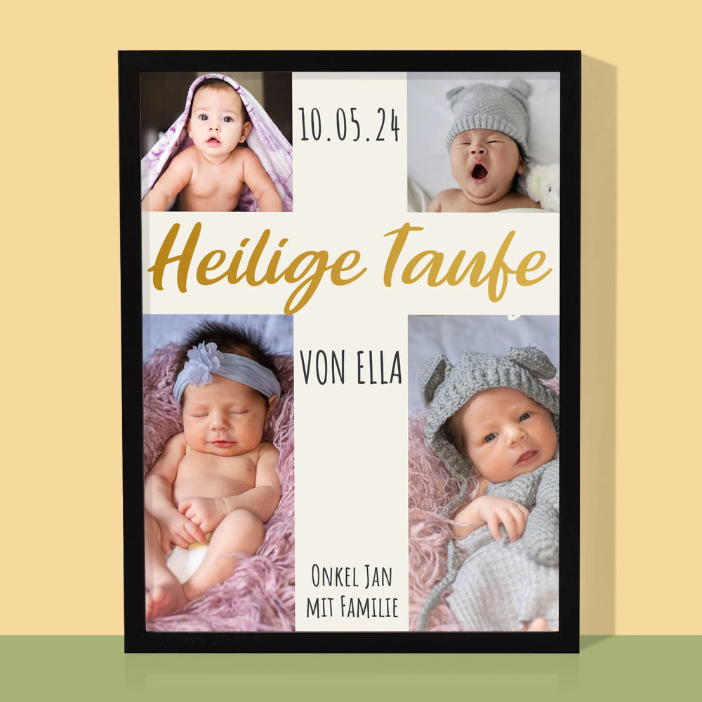 Fotocollage: Heilige Taufe Kreuz - Stand din lemn