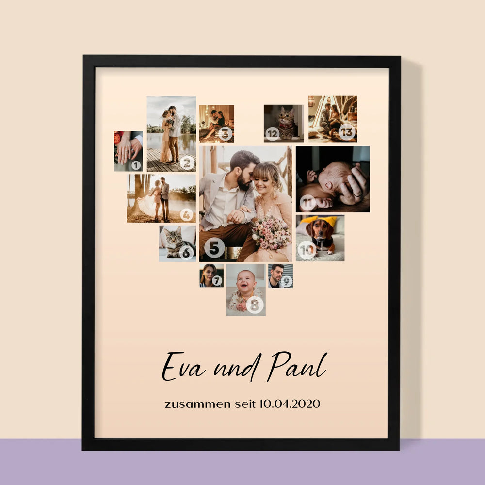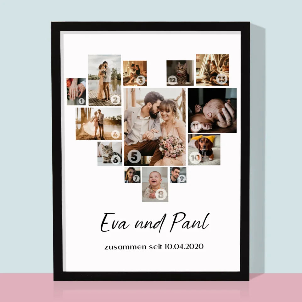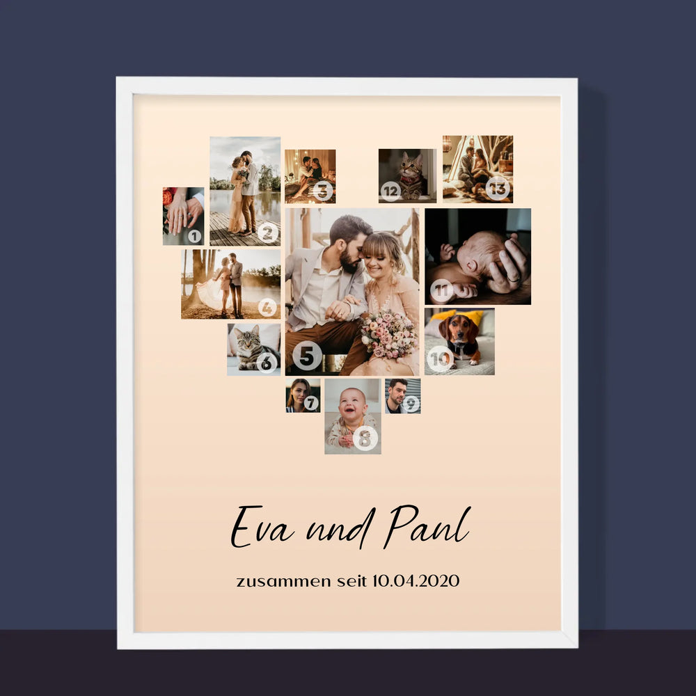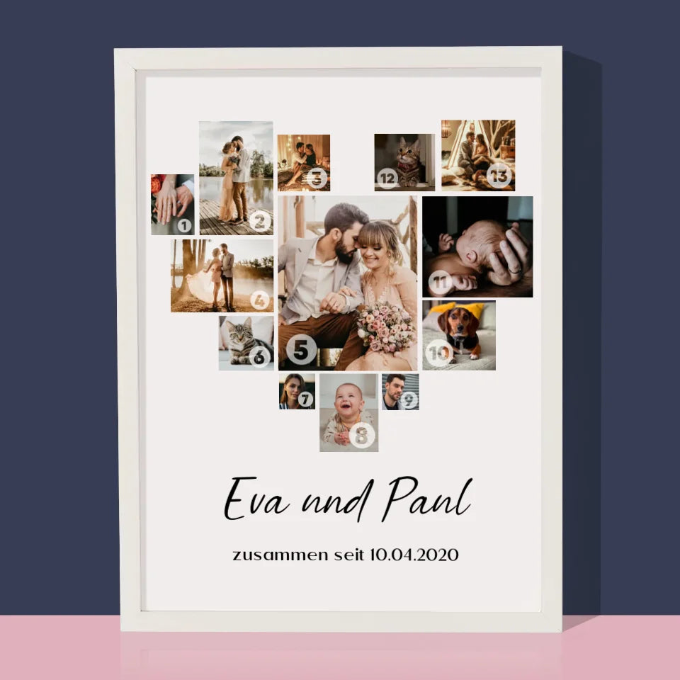 Fotocollage: Herz - Druck mit Rahmen - Vertikal