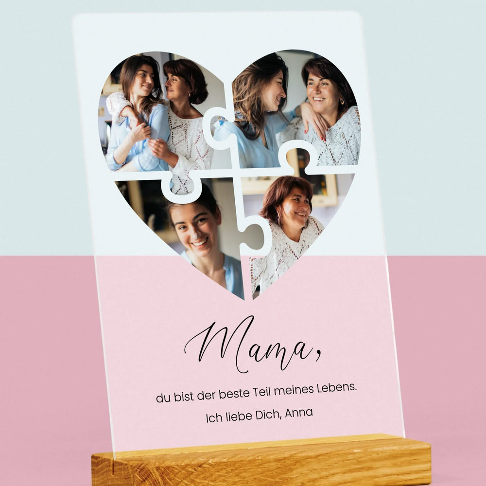 Fotocollage: Herz Puzzle Für Mama - Druck auf Acrylglas mit LED-Beleuchtung