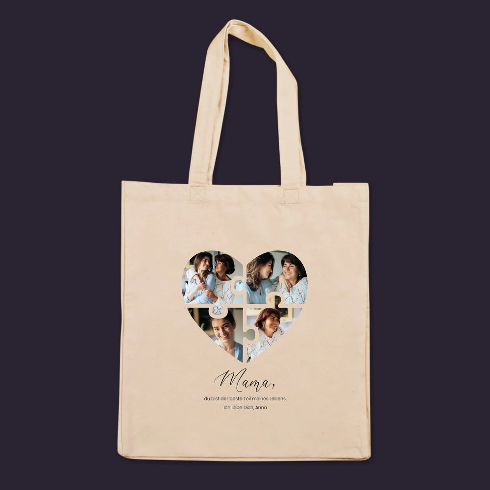 Fotocollage: Herz Puzzle Für Mama - Stofftasche