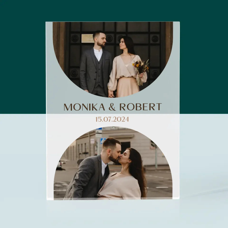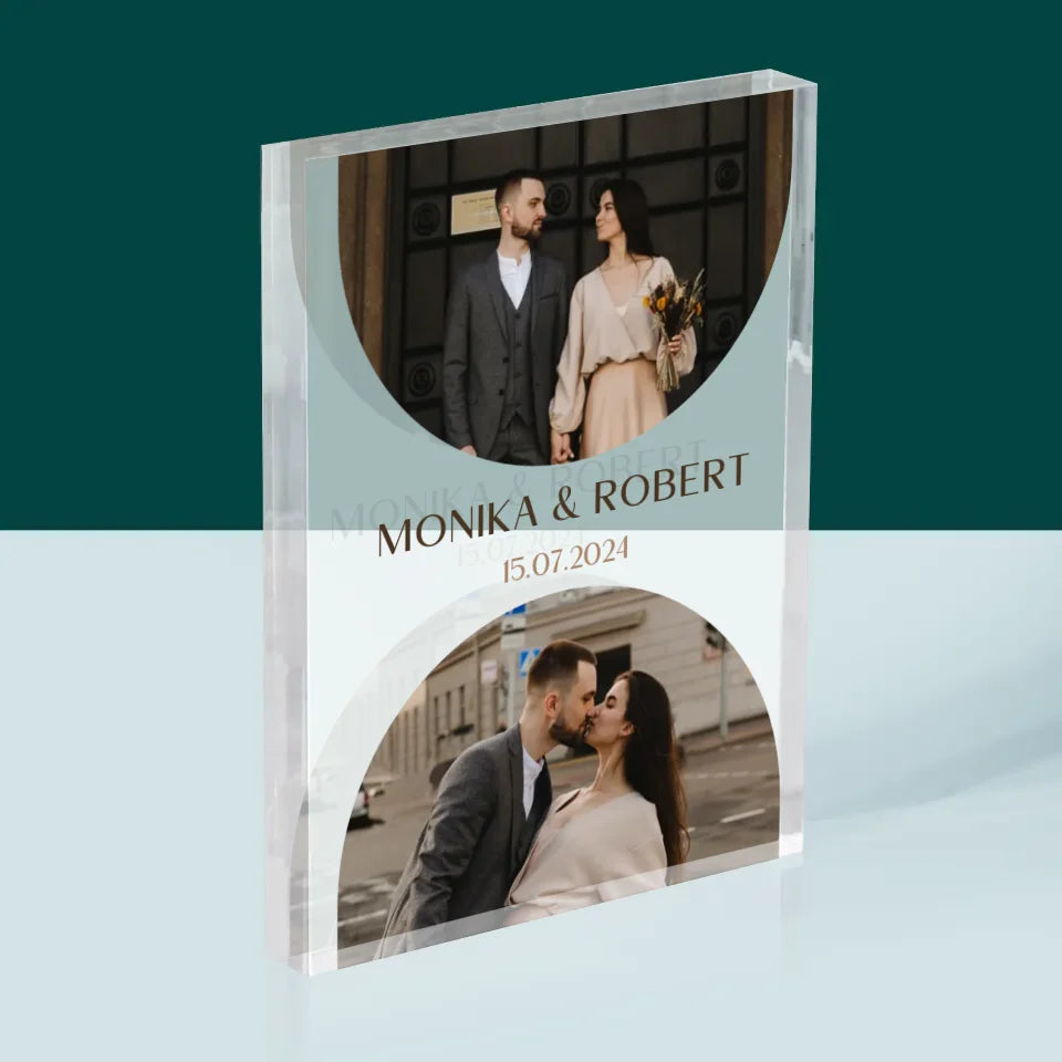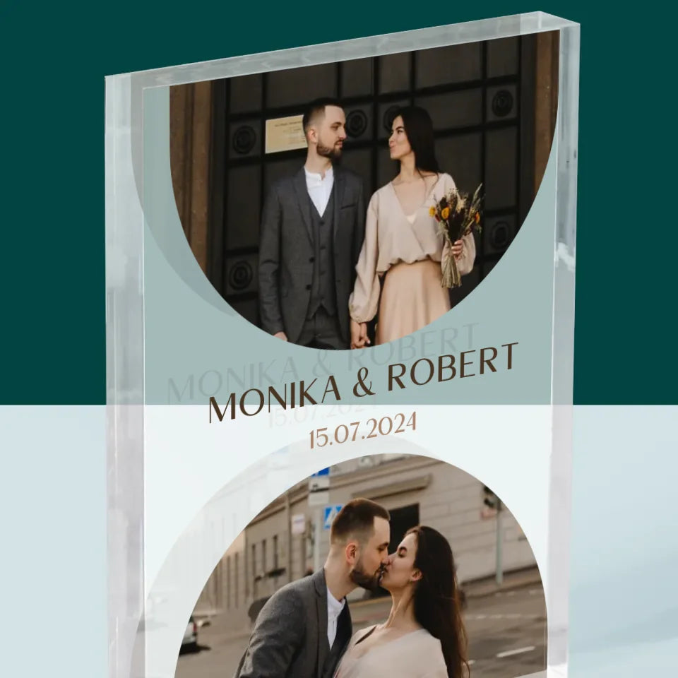 Fotocollage: Hochzeitsdatum - Acrylblock - Vertikal
