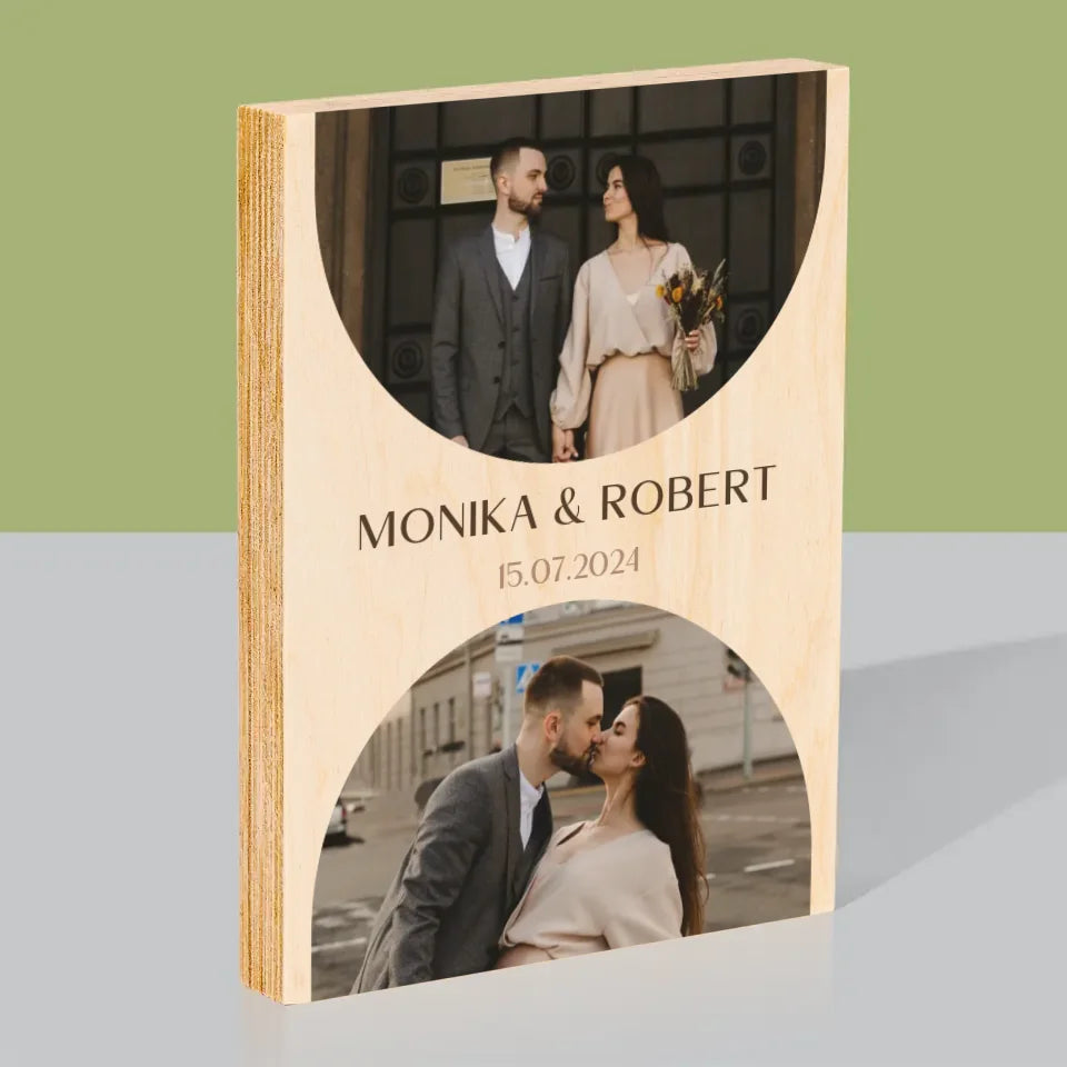 Fotocollage: Hochzeitsdatum - Druck auf Holz - Vertikal