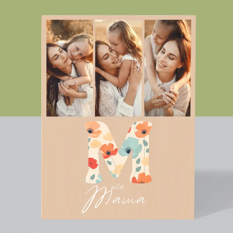 Fotocollage: M Wie Mama - Druck auf Holz - Vertikal
