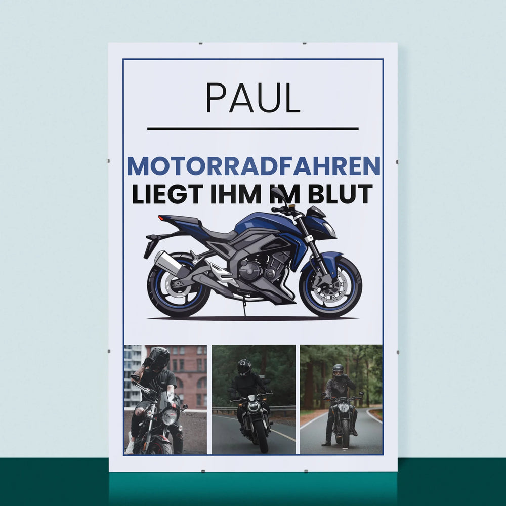 Fotocollage: Motorradfahren Liegt Ihm Im Blut - Poster