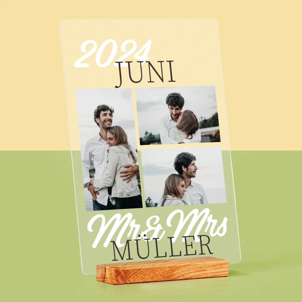 Fotocollage: Mr&Mrs Datum - Druck auf Acrylglas
