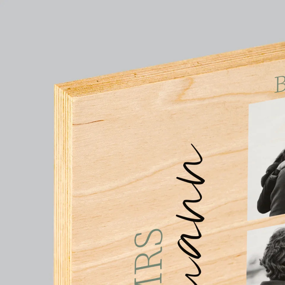 Fotocollage: Mr&Mrs Hochzeit - Druck auf Holz - Vertikal