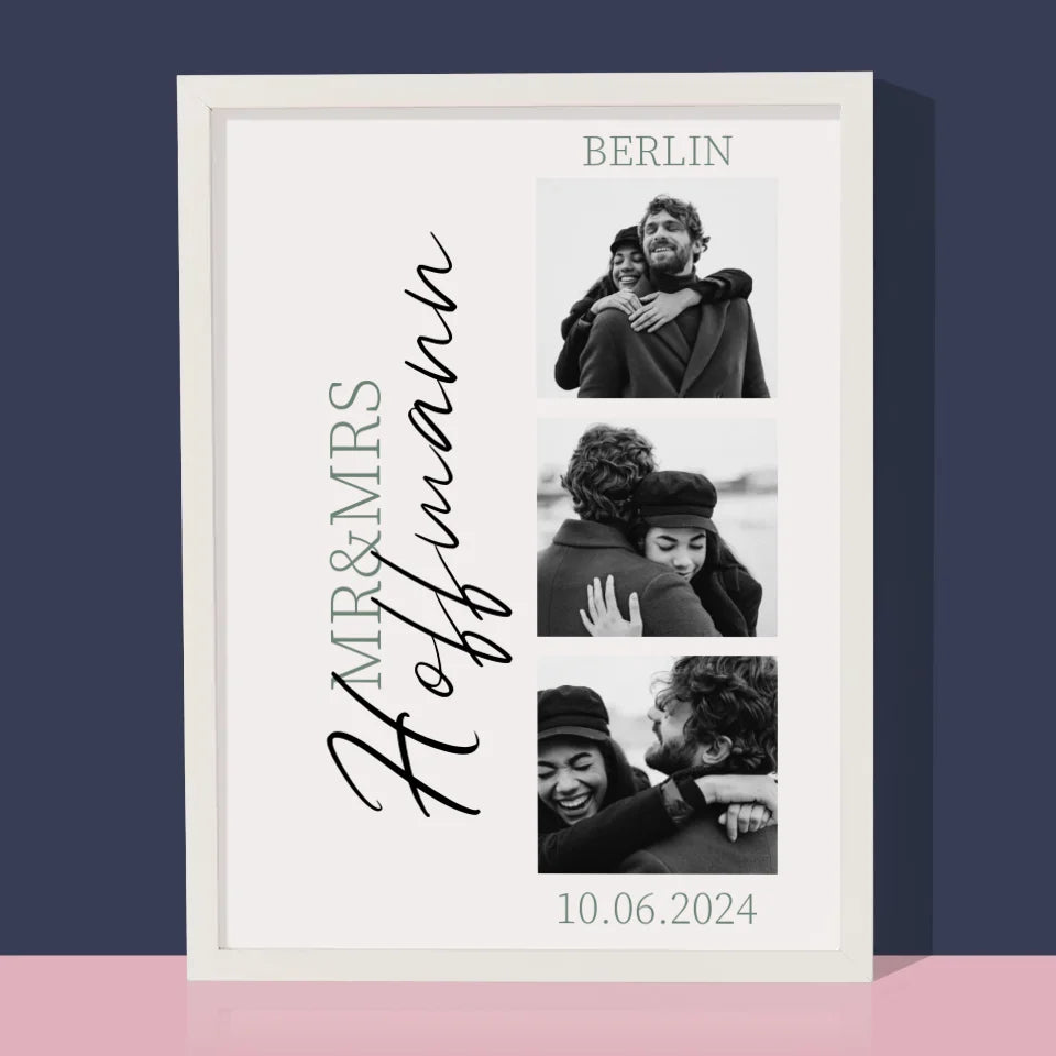 Fotocollage: Mr&Mrs Hochzeit - Druck mit Rahmen - Vertikal