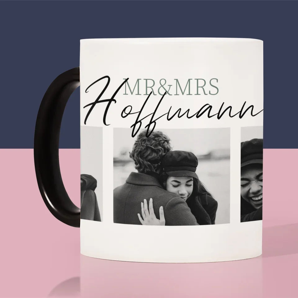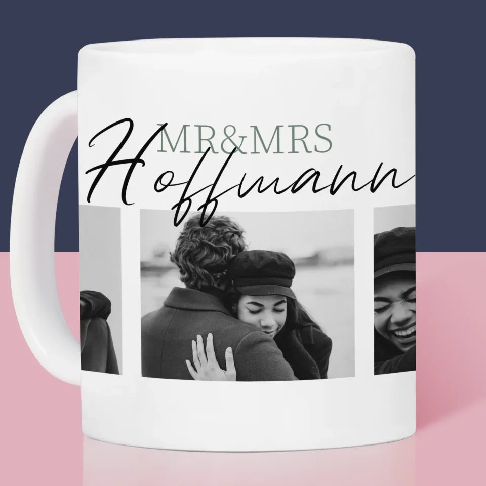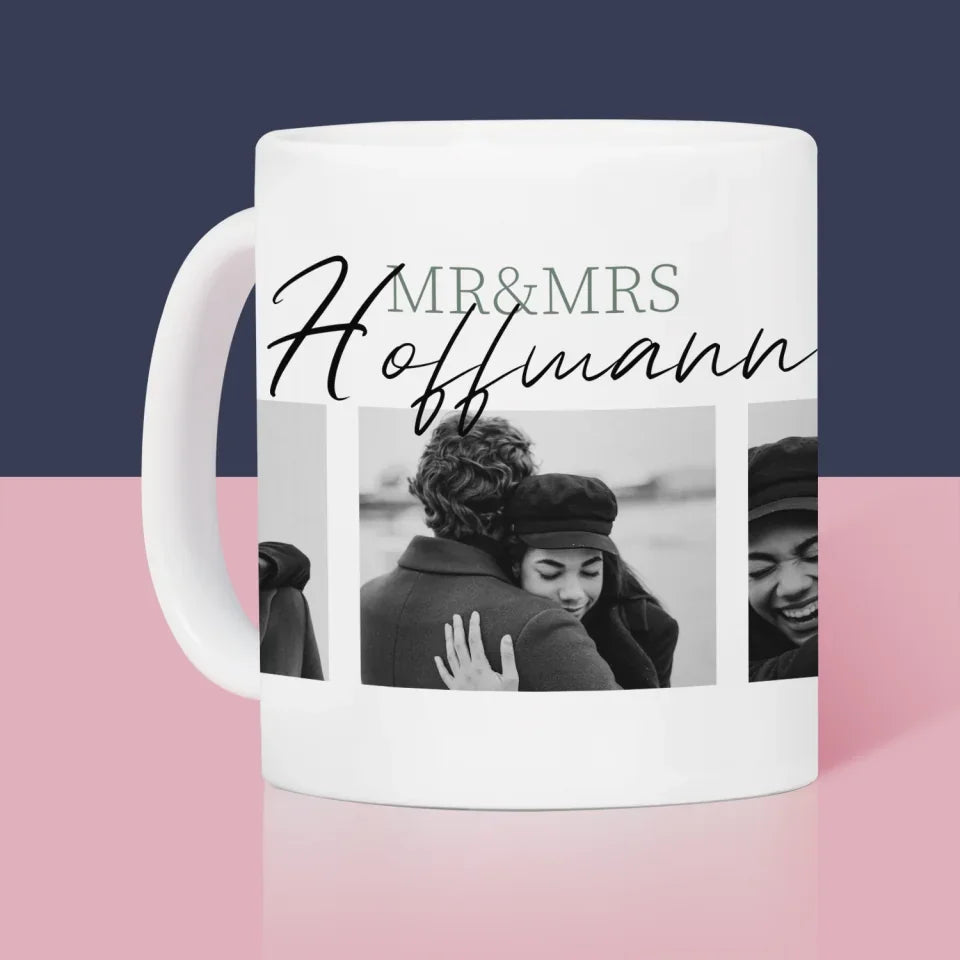Fotocollage: Mr&Mrs Hochzeit - Tasse