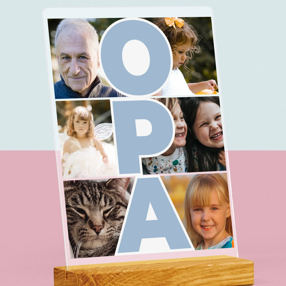 Fotocollage: Opa - Druck auf Acrylglas mit LED-Beleuchtung
