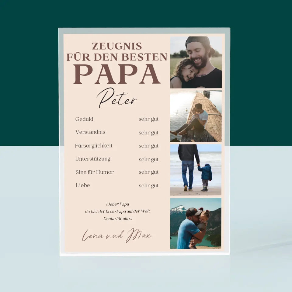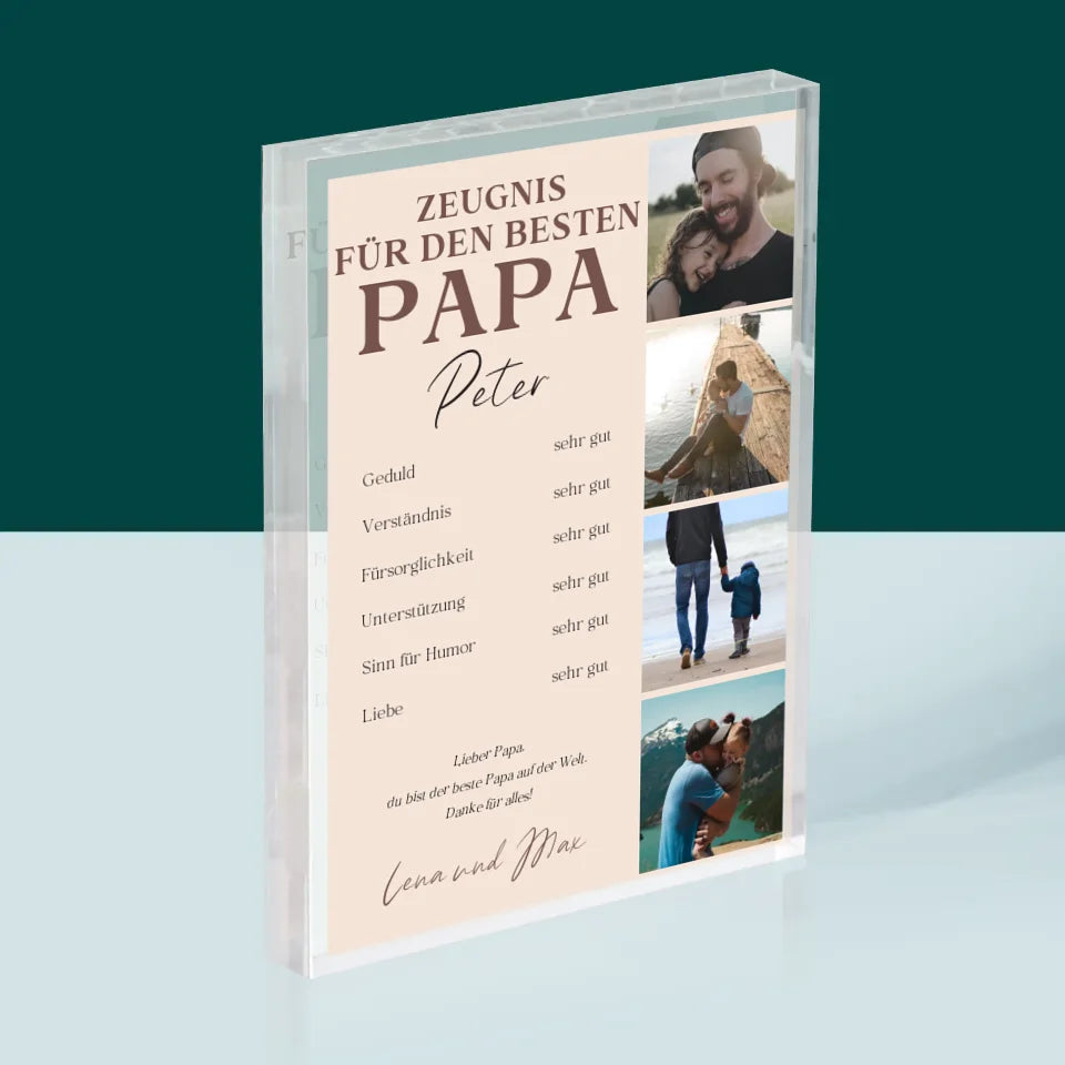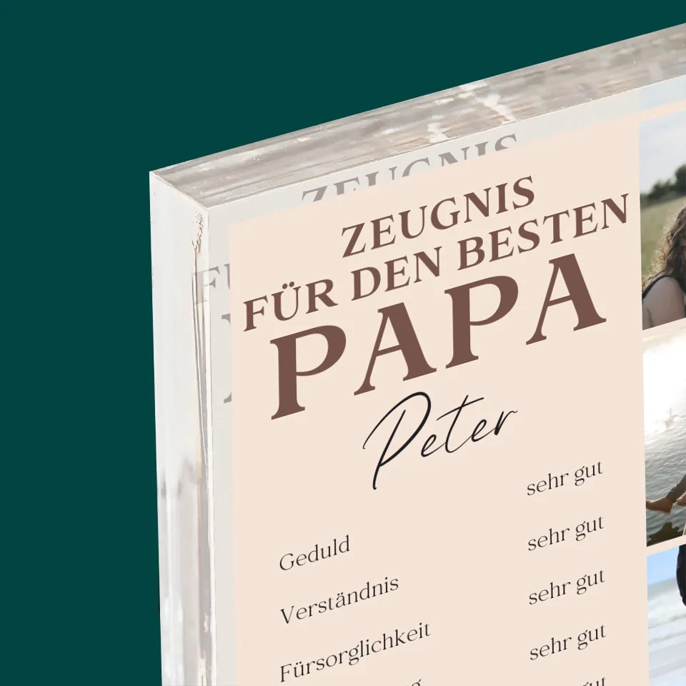 Fotocollage: Papa-Zeugnis - Acrylblock - Vertikal