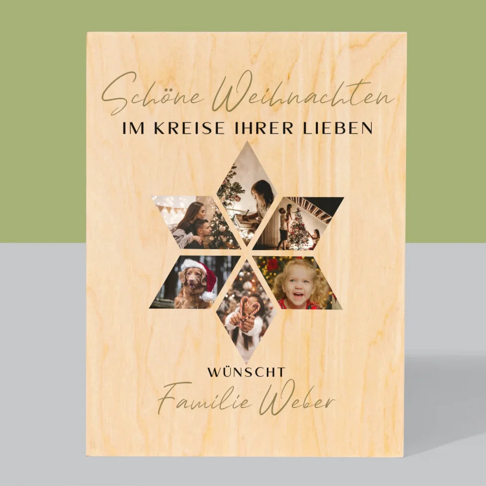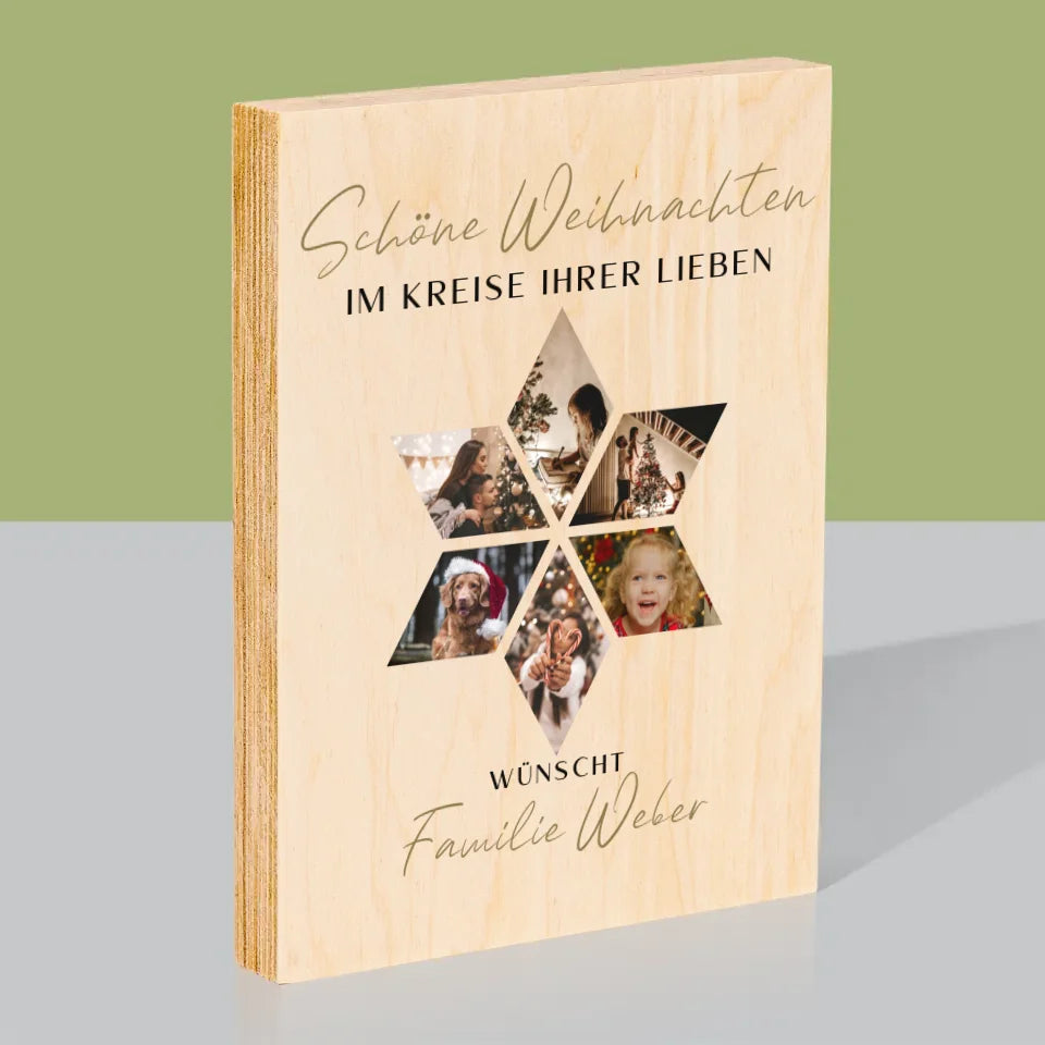 Fotocollage: Schöne Weihnachten Schneeflocke - Druck auf Holz - Vertikal
