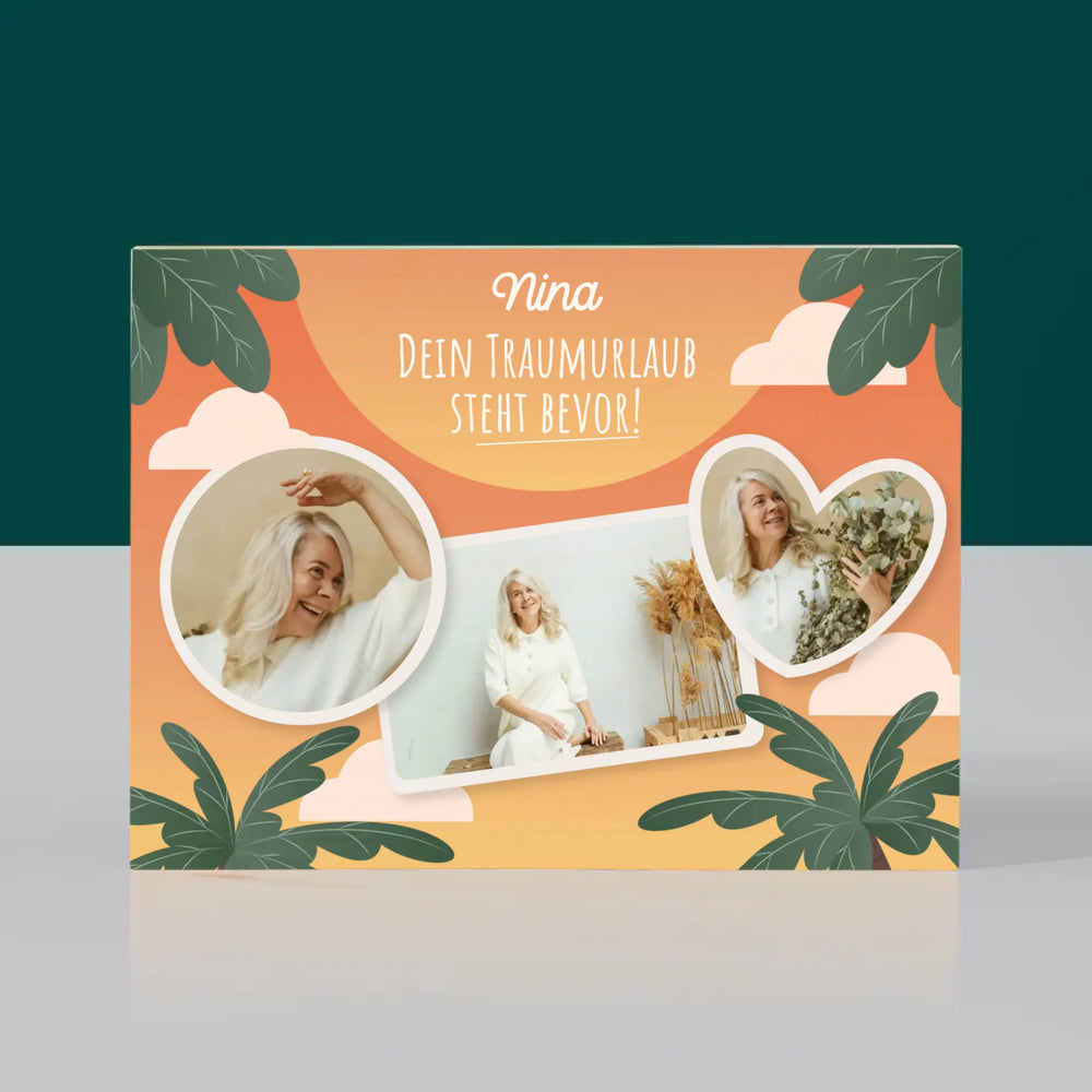Fotocollage: Traumurlaub - Druck auf Holz - Horizontal