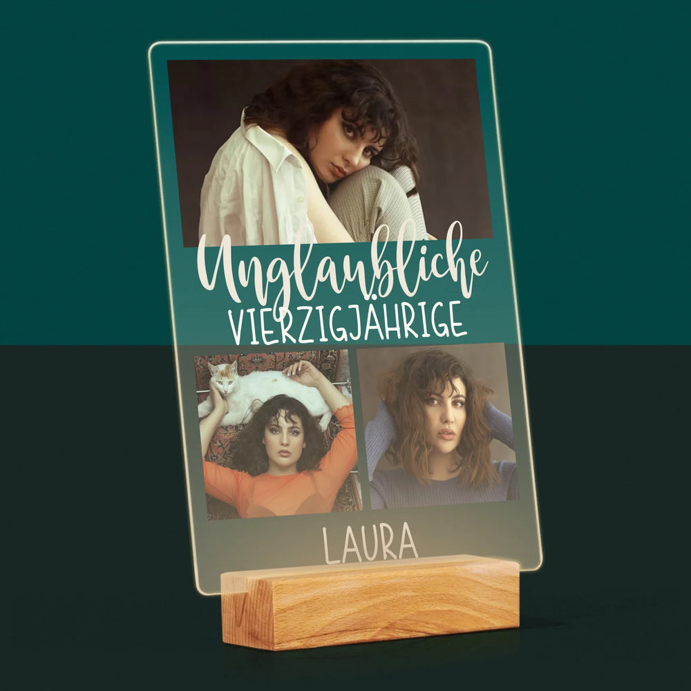 Fotocollage: Unglaubliche Vierzigjährige - Druck auf Acrylglas mit LED-Beleuchtung