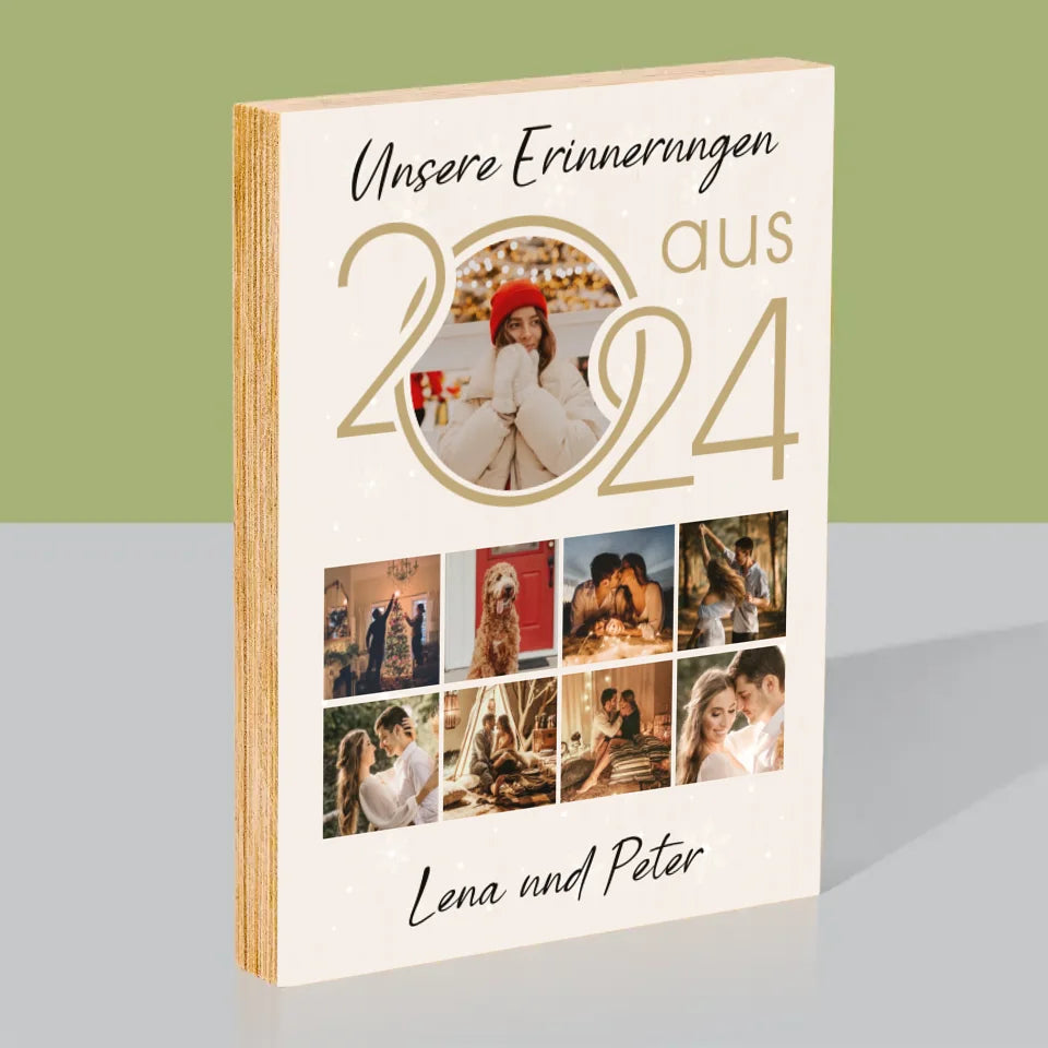 Fotocollage: Unsere Erinnerungen Aus Dem Jahr - Druck auf Holz - Vertikal