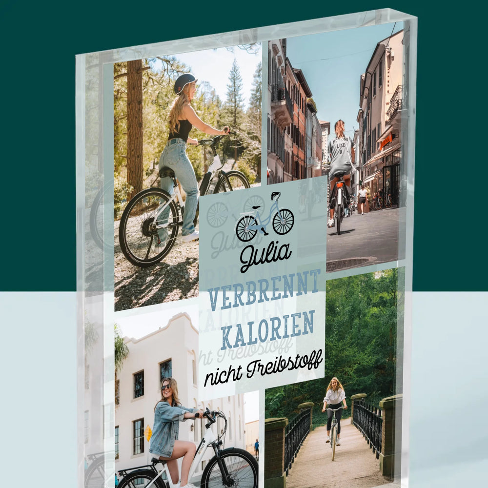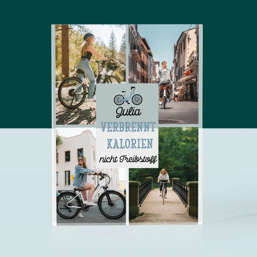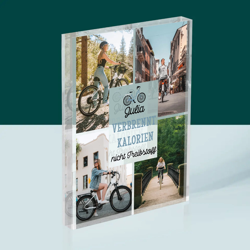 Fotocollage: Verbrennt Kalorien, Nicht Treibstoff - Acrylblock - Vertikal