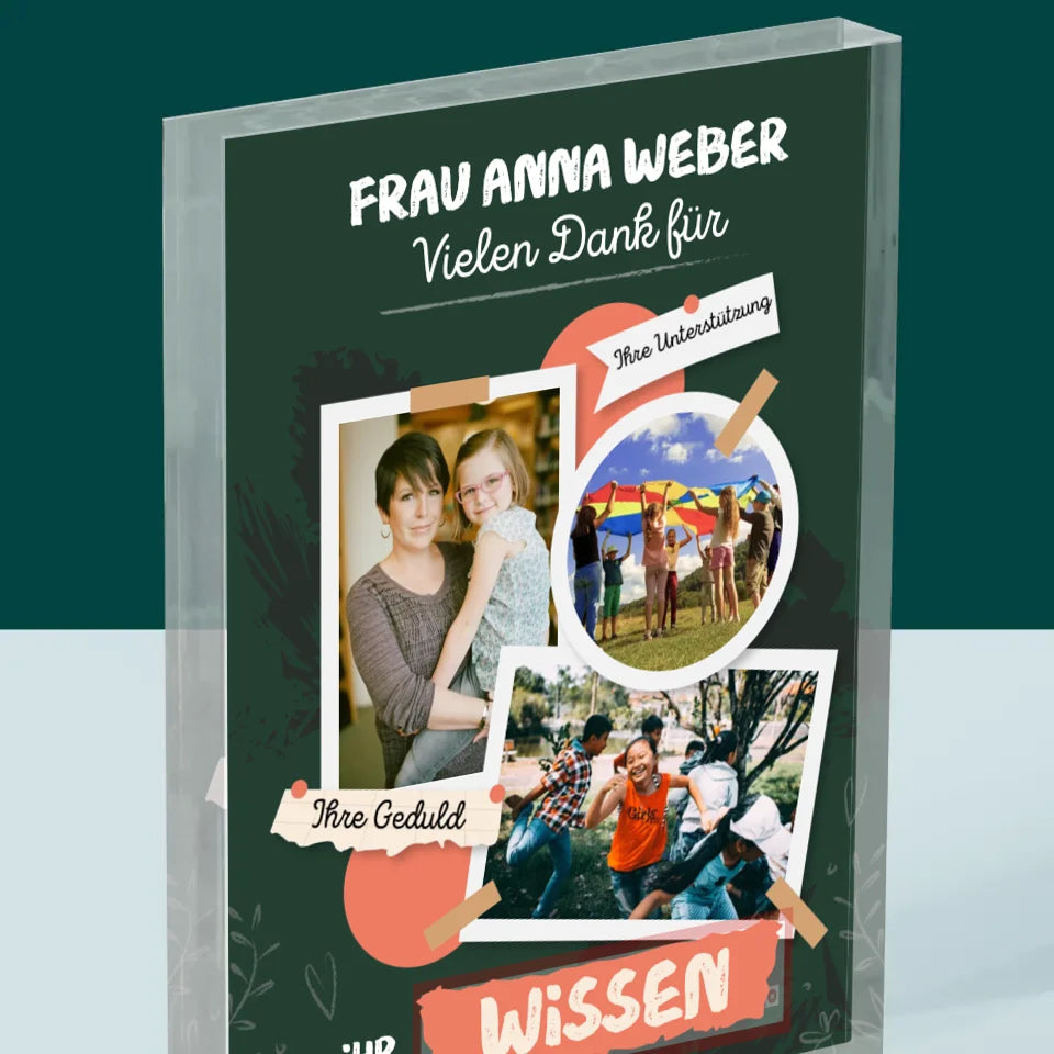 Fotocollage: Vielen Dank Für Ihr Wissen - Acrylblock - Vertikal