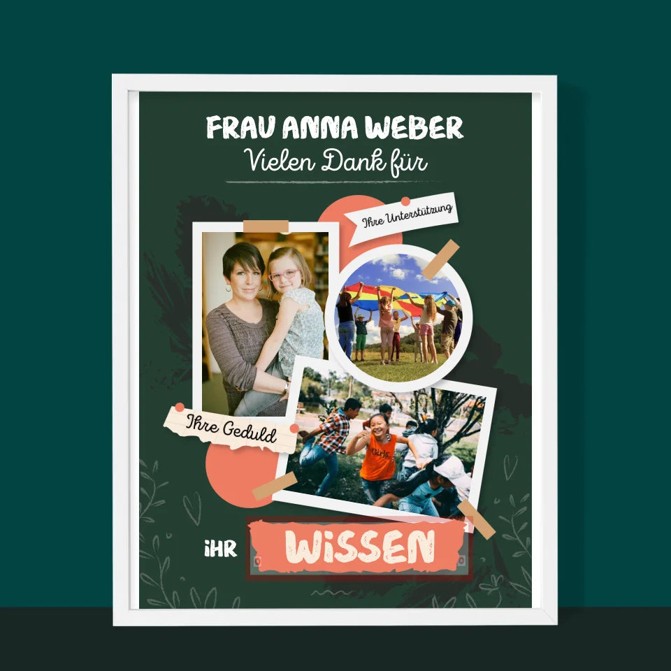 Fotocollage: Vielen Dank Für Ihr Wissen - Druck mit Rahmen - Vertikal
