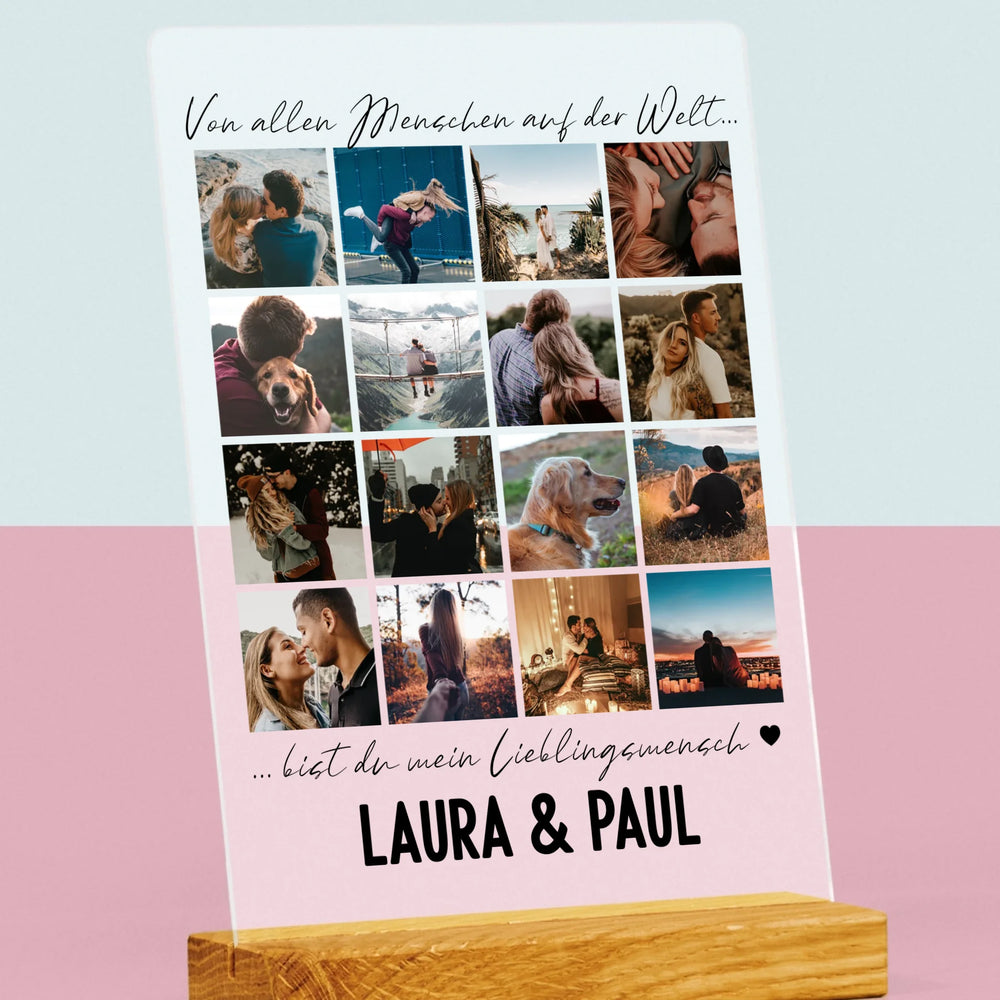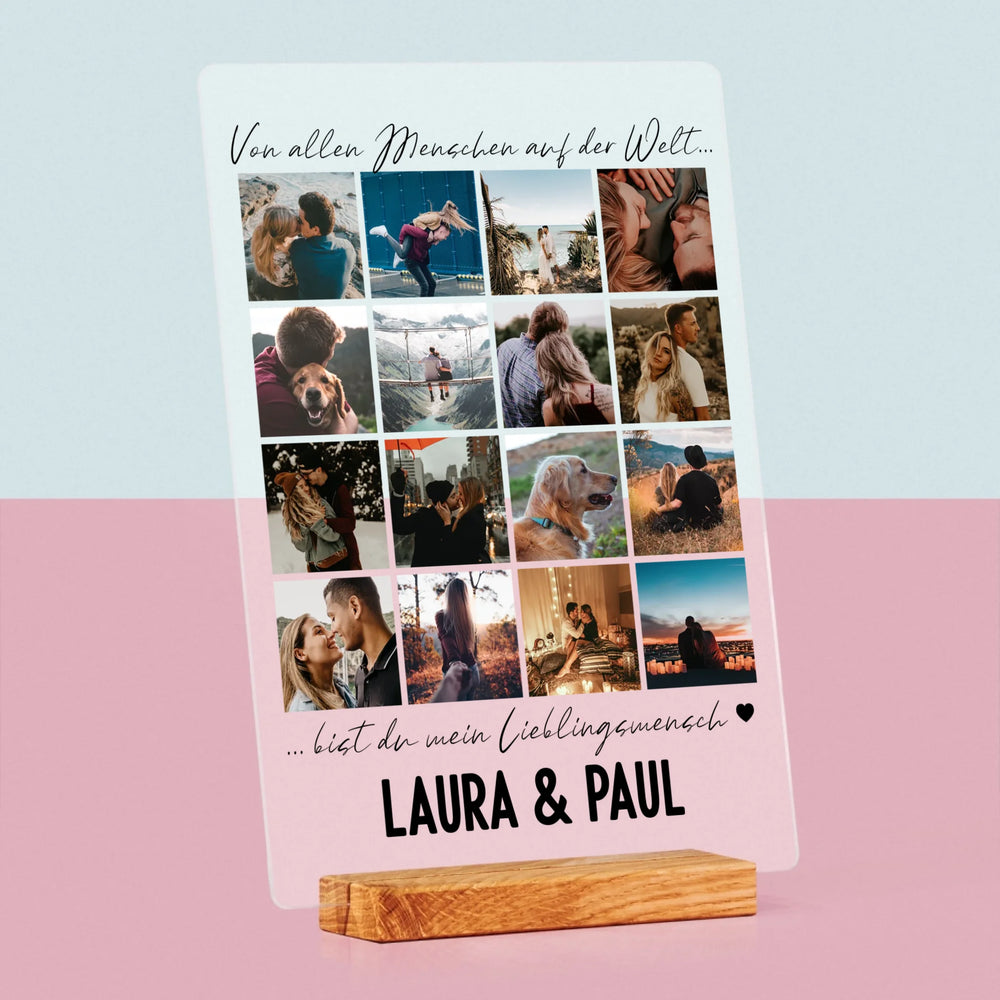 Druck auf einem 2 cm dicken, klaren Acrylglas (Plexiglas), individuell personalisiert.