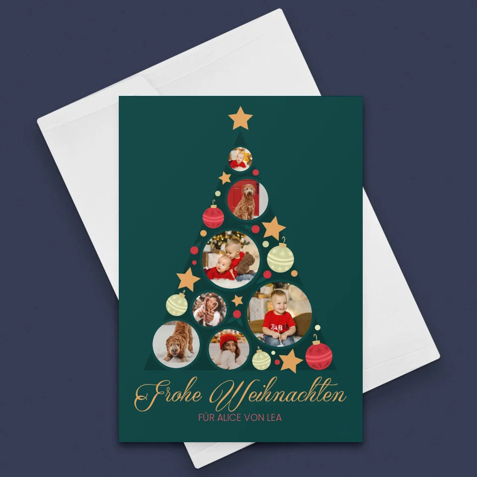 Fotocollage: Weihnachtsbaum Weihnachtskugeln - Glückwunschkarte