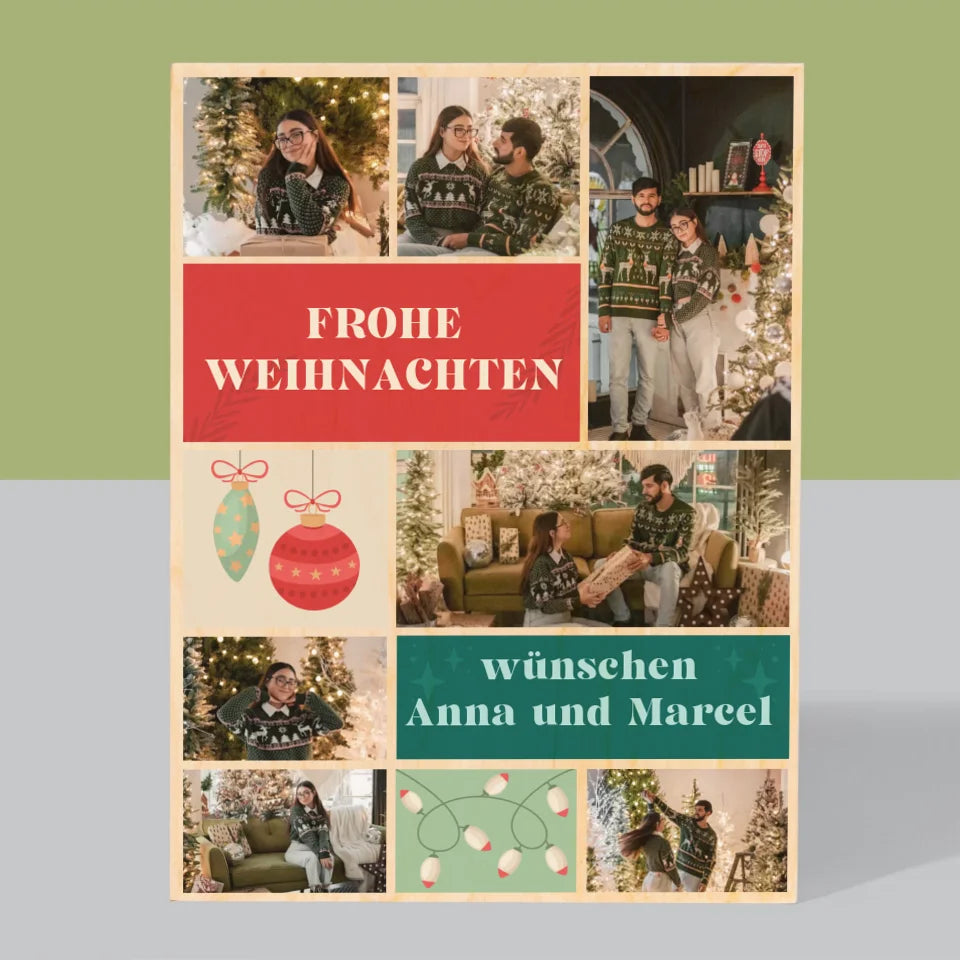 Fotocollage: Weihnachtsfotos - Druck auf Holz - Vertikal