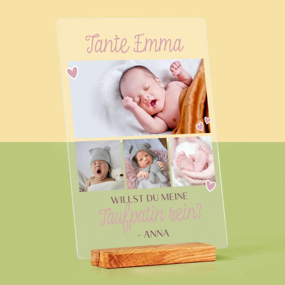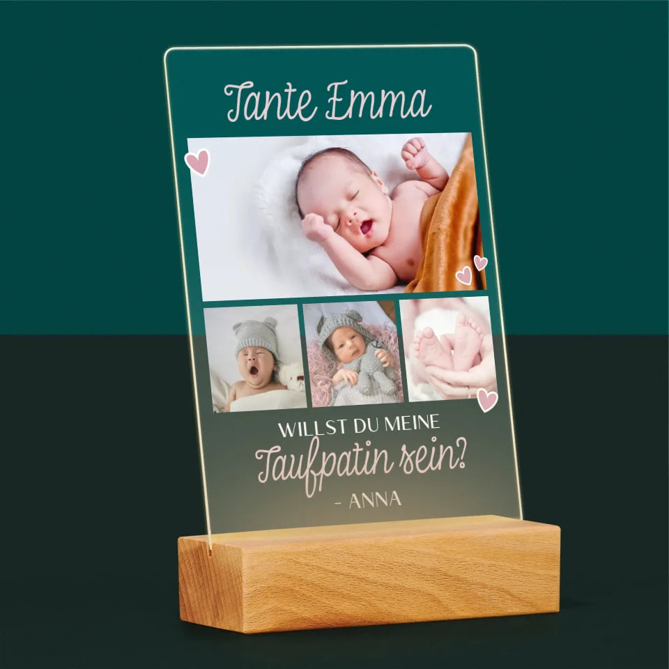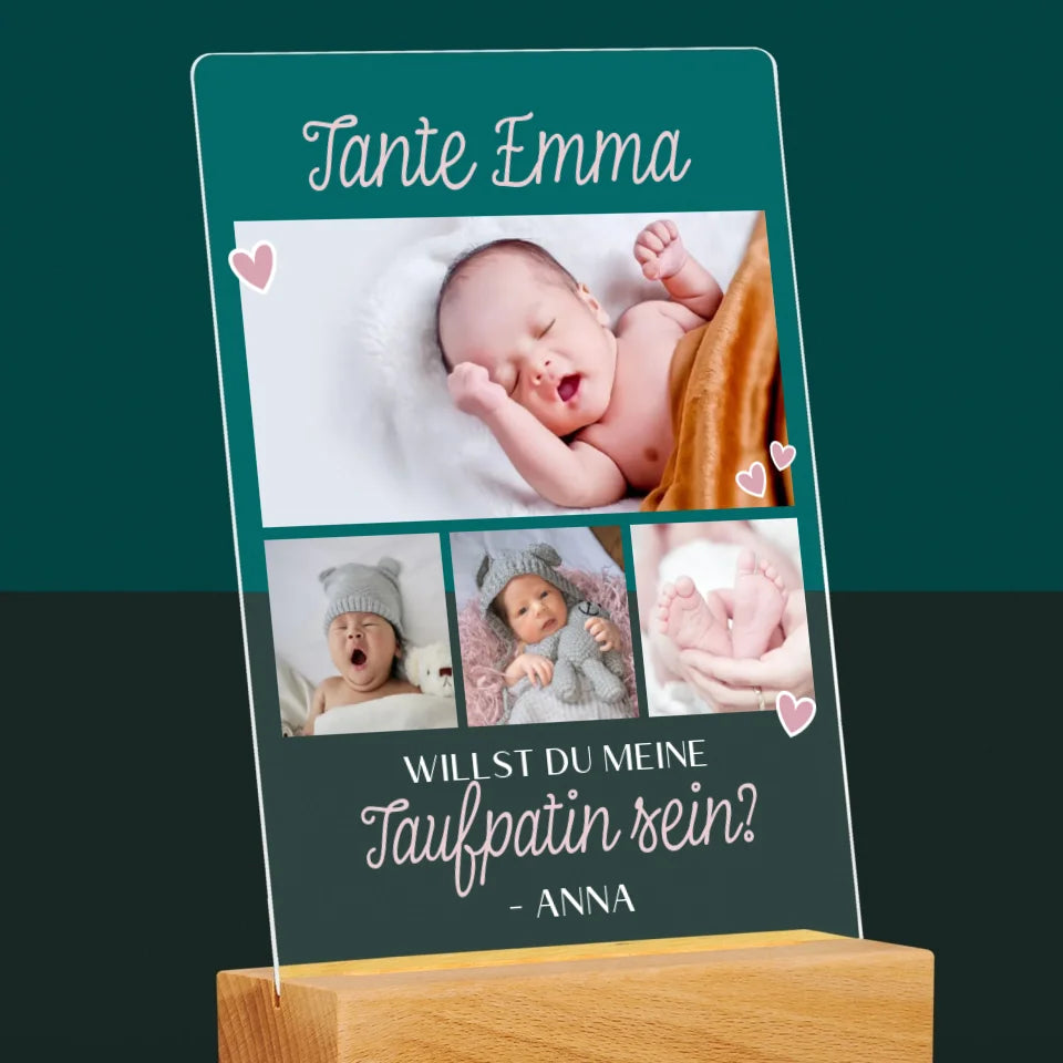 Fotocollage: Willst Du Meine Taufpatin Sein? - Druck auf Acrylglas mit LED-Beleuchtung