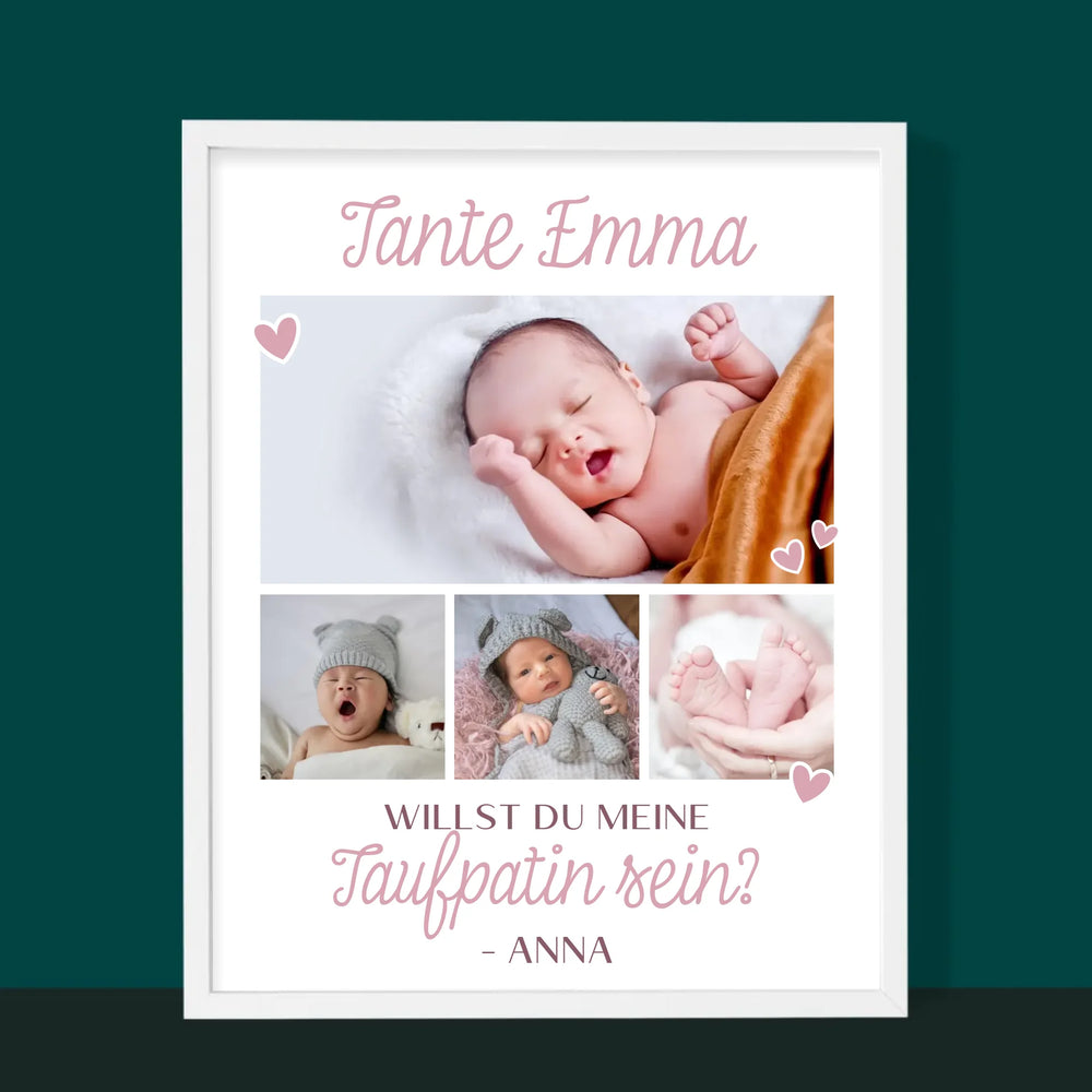 Fotocollage: Willst Du Meine Taufpatin Sein? - Stand din lemn